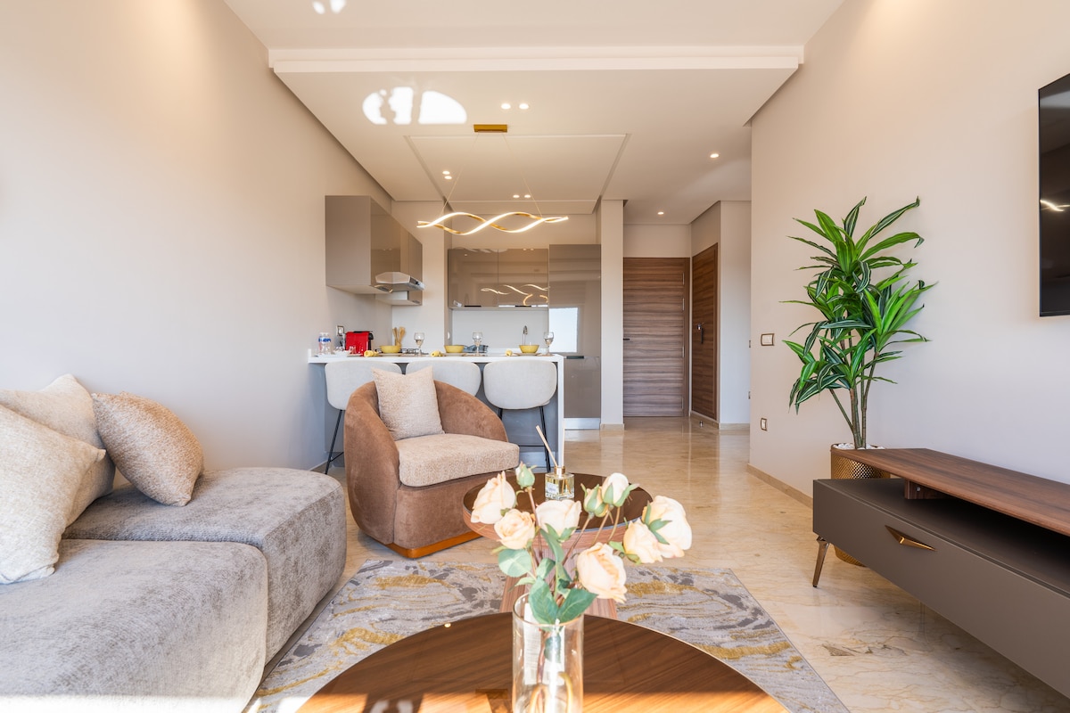 Welcome to this beautiful apartment located in Casablanca’s New Medina, near Habous. Enjoy a refined, thoughtfully designed space with a bright balcony, elegant décor, and modern amenities—ideal for a comfortable stay. A fully equipped kitchen and secure parking ensure convenience and peace of mind. A calm and contemporary retreat where every detail has been carefully considered to make your stay unforgettable.