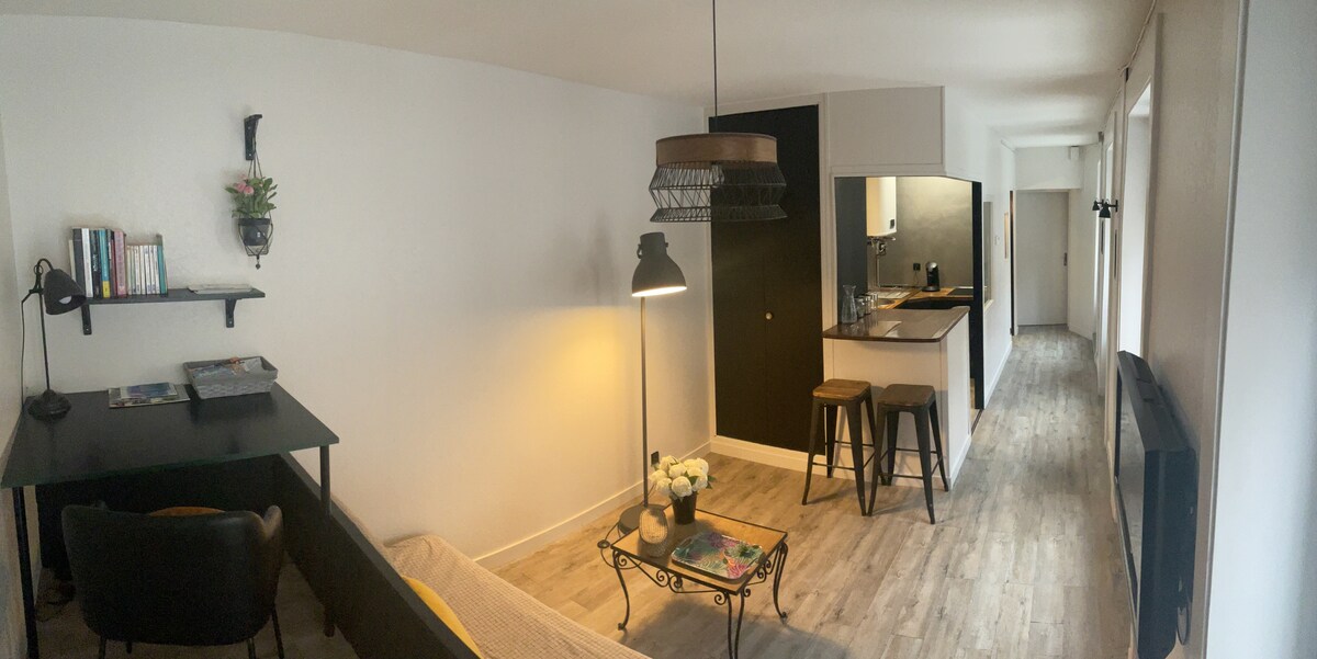 Apartamento de 40 m2 situado en el centro de la ciudad peatonal de Besançon «La Boucle». Cerca de estación de tren, estaciones de autobús y tranvía, comercios y numerosos lugares turísticos. El alojamiento recién reformado consta de: - Amplia sala de estar: salón y dormitorio (cama doble y pequeño vestidor) separados por una cristalera - Cocina equipada y zona de comedor - Zona de escritorio - Cuarto de baño con bañera Todas las comodidades para una estancia agradable...