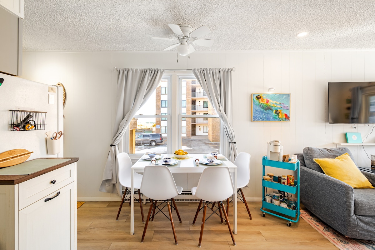 ¡Te damos la bienvenida a Salty Shark, estudio frente al mar! Este estudio remodelado tiene capacidad para 4 personas y se encuentra en North Ocean City, cerca de excelentes restaurantes, bares y el North Side Park de 58 acres. El parque cuenta con campos deportivos, un centro recreativo, un sendero para caminar/montar en bicicleta, un muelle para pescar cangrejos, un parque infantil y una zona de fitness al aire libre. ¡El edificio también tiene piscina al aire libre en verano! La unidad cuenta con una cama tamaño king Murphy y un sofá cama tamaño queen. ¡También hay una piscina al aire libre abierta en los meses de verano!