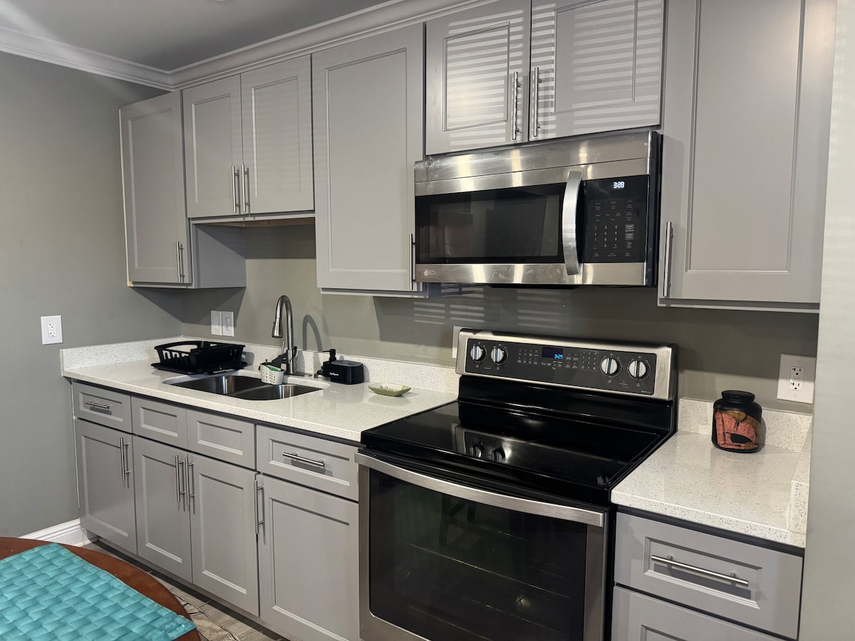 Enjoy a stylish and relaxing experience at this centrally-located home. Single story end unit in a small quiet complex just minutes from great restaurants , shopping , ECU , downtown or Vidant. (Under 2 miles to ECU!) Master bedroom with King bed and large en-suite with double sinks. Second bedroom with queen bed. Smart TVs in both bedrooms and living with streaming apps , living room tv can also access all major channels via YouTube tv with our log in .