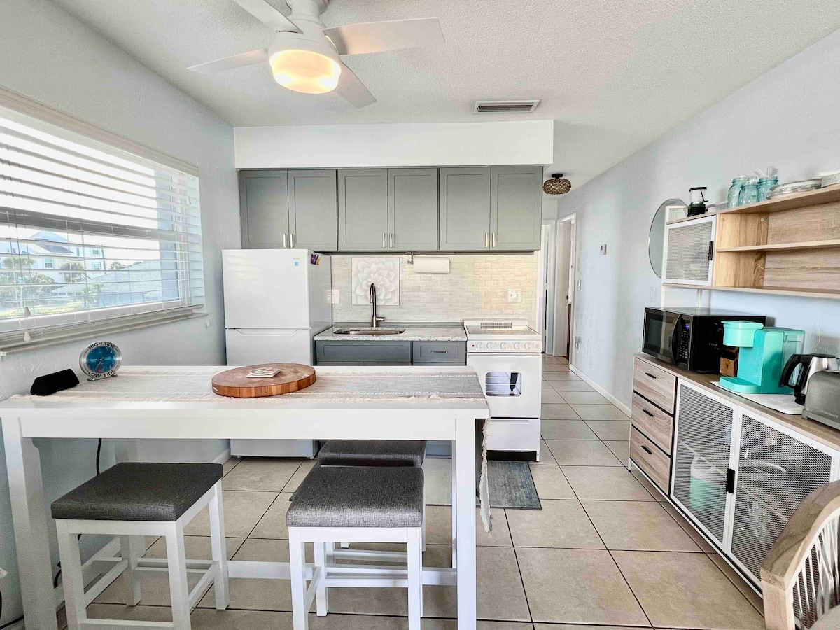 Paradise is just across the street from this super cute, thoughtfully-furnished studio with bonus room! Soak up the sun, waves & spectacular sunrises! 3 min walk to ocean, restaurants/bars & SUP/surfboard rentals. NSB’s historic district is less than 2 miles where action-packed Flagler Ave & quaint Canal St. offer festivals, nightlife, boutiques, kayak/bike rentals, art galleries, live music, spas, parks, yoga, antique stores, museum, boat tours & fabulous dining. It’s Beach Time!😃