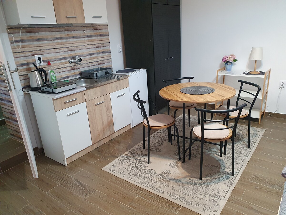 Siéntete como en casa en este acogedor estudio de inspiración bohemia en el corazón de Sombor. El apartamento está completamente amueblado y cuidadosamente diseñado, con una cómoda cama, una cocina bien equipada y un encantador balcón privado con una encantadora vista de la ciudad, perfecto para el café de la mañana o la relajación de la noche. A solo unos pasos de cafeterías, tiendas y lugares culturales locales, esta es una base ideal para explorar todo lo que Sombor tiene para ofrecer.