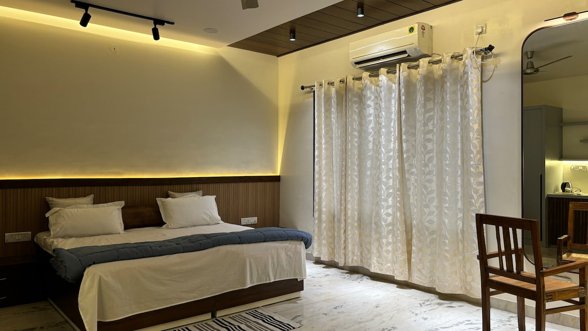 Aquí tienes un lujoso loft en el centro de la ciudad en una calle sin tráfico, convenientemente ubicado para muchos de los servicios naturales de la zona en BHOPAL. Estás literalmente a pocos pasos del lago Shahpura, a pocos pasos del famoso parque de la ciudad, varios centros comerciales, restaurantes y tiendas de comestibles. Perfecto para parejas y familias pequeñas.