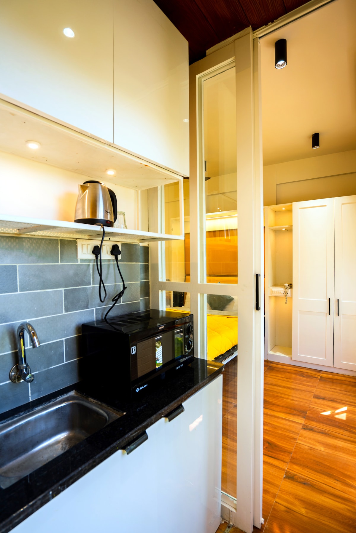1BHK Airbnb en Bittan Market, Bhopal Sala de estar: sofá acogedor, mesa central, escritorio y silla de oficina, TV, plantas Dormitorio: cama tamaño king, espejo de pared completa, amplio espacio de almacenamiento, aire acondicionado Cocina: nevera, microondas, hervidor, inducción, cubiertos y utensilios, purificador de agua Lavabo: moderno con artículos de aseo incluidos Zona al aire libre: asientos relajantes con una mesa de centro Electrodomésticos: lavadora, microondas, nevera, hervidor, inducción, aire acondicionado, TV, WiFi