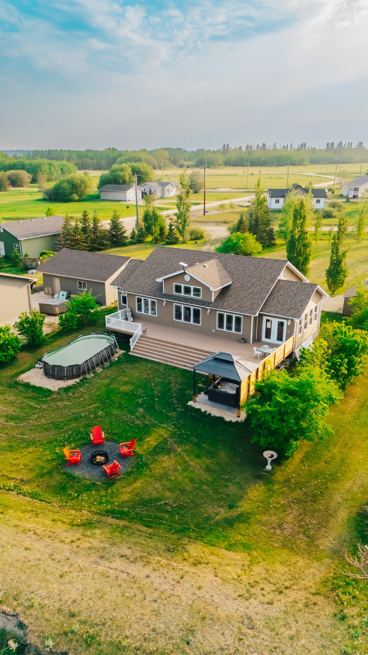 Escápate a nuestra impresionante casa frente al lago con 3 dormitorios y 3 baños, perfecta para familias y amigos. Disfruta de un televisor de 75 pulgadas y un jacuzzi con chorros para 7 personas para la máxima relajación. La cocina totalmente equipada y la barbacoa en la terraza hacen que comer sea muy fácil. Con grandes ventanales que ofrecen hermosas vistas al lago, el espacioso diseño incluye un acogedor solárium. Hay mucho aparcamiento y estamos a solo 15 minutos en coche de Gimli, donde puedes explorar restaurantes y tiendas locales. ¡Tu escapada perfecta te espera!