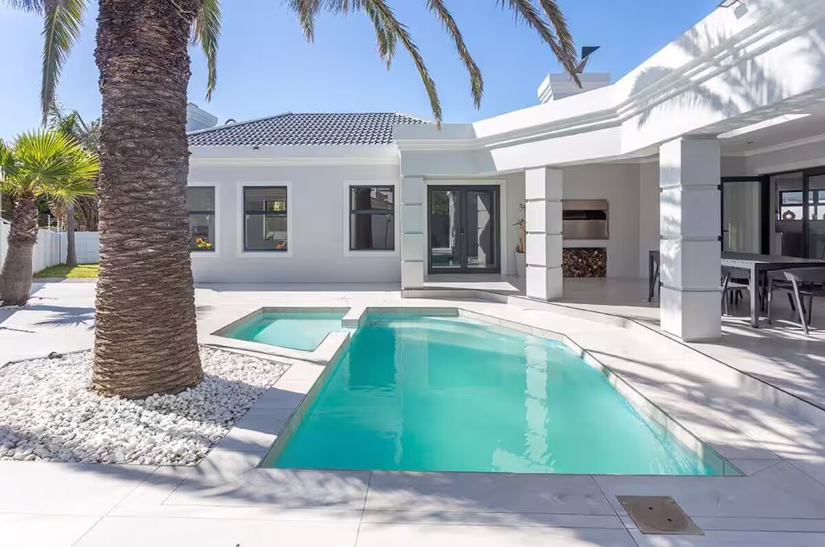 Primera fila: ¡EN EL LUGAR con impresionantes vistas A LA montaña DE LA Mesa! Ubicado directamente en Sunset Beach, disfruta de impresionantes vistas del emblemático punto de referencia de Ciudad del Cabo. La comodidad se encuentra con el lujo: calefacción por suelo radiante para inviernos acogedores, jacuzzi climatizado, Internet de alta velocidad y energía totalmente solar. Las exclusivas habitaciones con camas tamaño king y baños en suite hacen que esta casa sea ideal para familias o grupos que buscan relajación y aventura. ¡No puedes estar más cerca del océano!