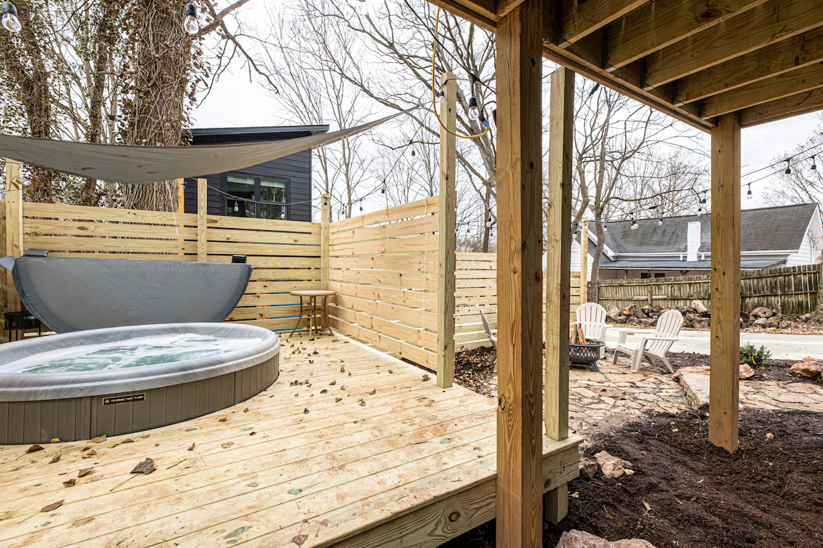A 1,6 millas del centro de la ciudad. A 2,2 millas del campus de UT. A 11 millas del aeropuerto TYS. Relájate en la bañera de hidromasaje, prepara s'mores junto al fuego y luego acurrúcate en el colchón de espuma viscoelástica y ve una película. Este estudio funky está a pocos minutos del centro de la ciudad, UT, Neyland y Thompson-Boling. Cuenta con una cocina americana totalmente equipada con nevera para bebidas, microondas y placa eléctrica. El estudio está adosado a una casa más grande, pero está completamente cerrado y es privado. También cuenta con aparcamiento y entrada propios.