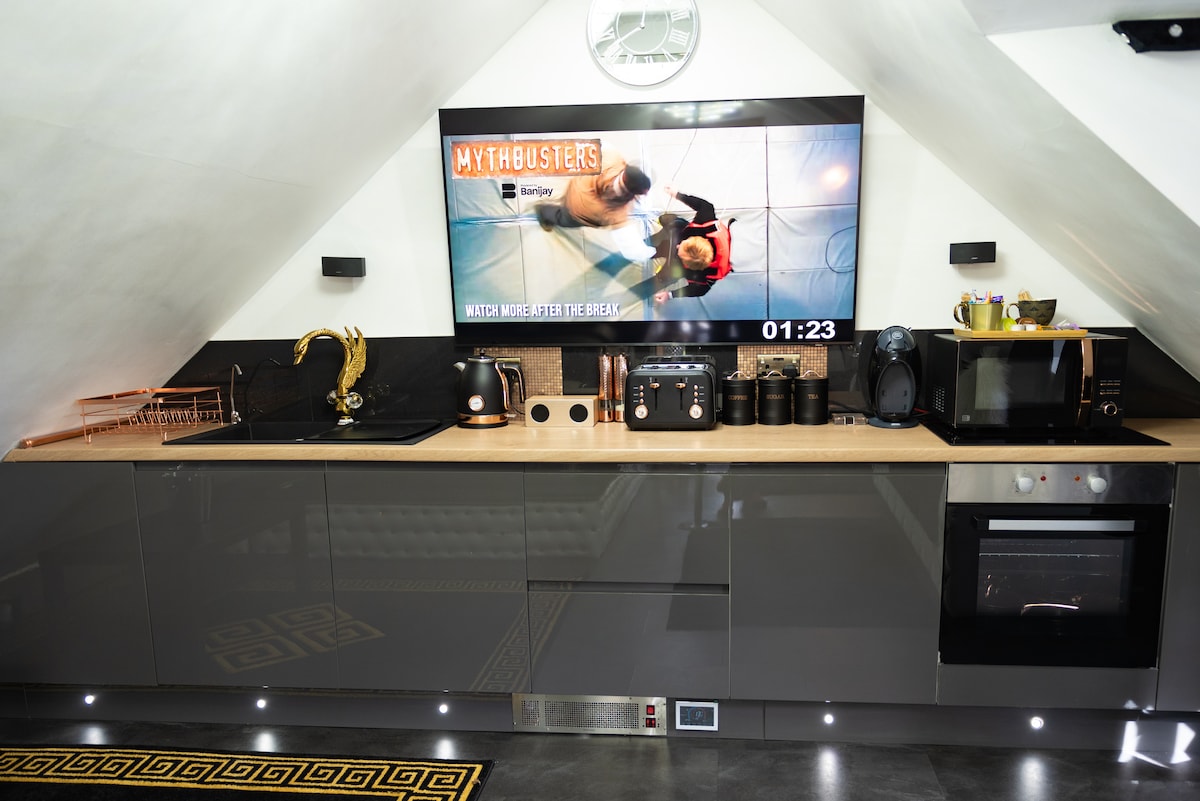 La antigua oficina de correos es un edificio victoriano recientemente reformado en Bromsgrove, Worcestershire, que está lleno de historia. El nuevo jardín secreto con bañera de hidromasaje privada, estufa de leña, comedor al aire libre e iluminación ambiental ofrece el lugar perfecto para que las parejas se relajen y desconecten. Hay varios pubs y restaurantes excelentes cerca, incluido un pub restaurante gourmet donde podrás disfrutar de un desayuno inglés completo, una comida de tres platos o un increíble asado de domingo. Hay un parque enfrente y campos circundantes.
