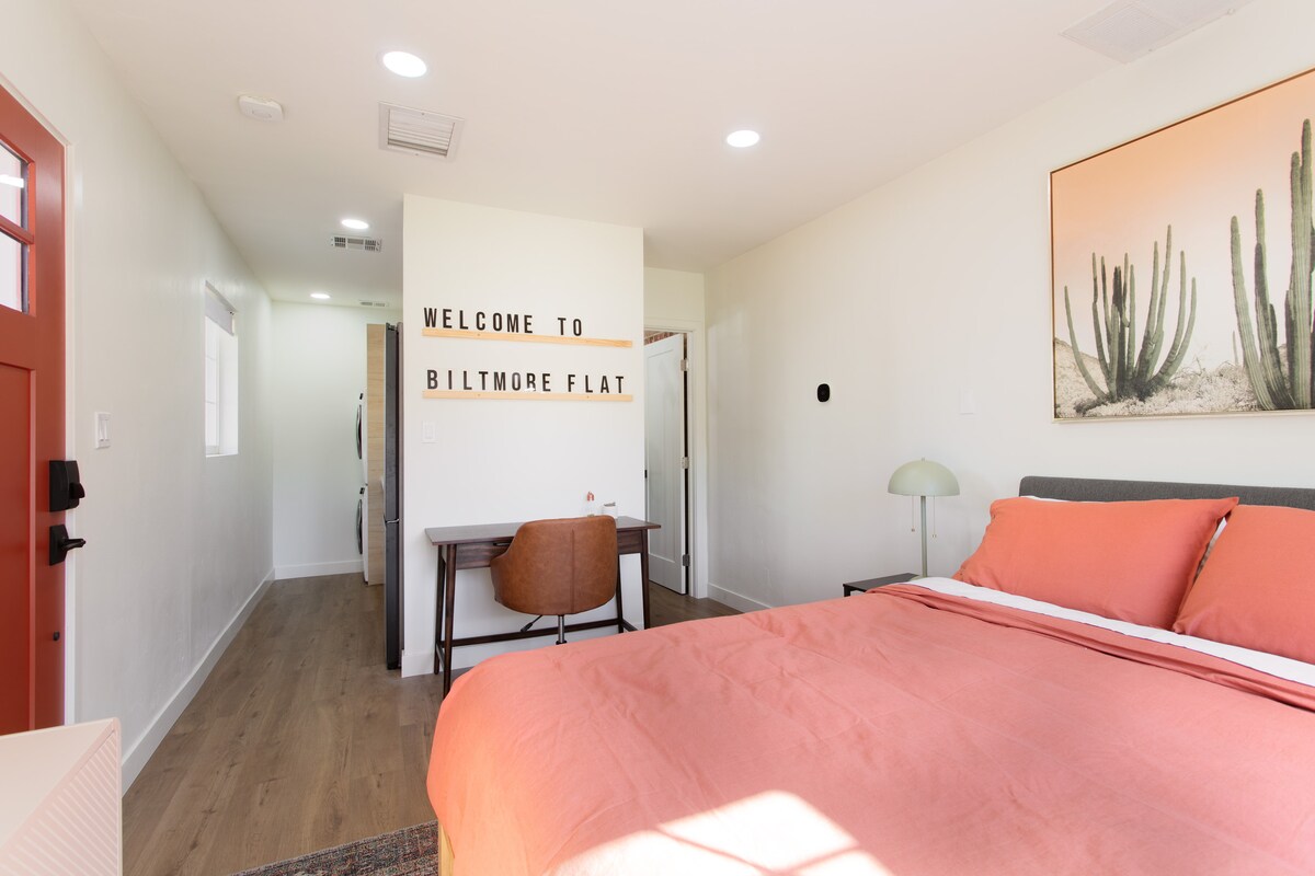 Bienvenido a Biltmore Flat, nuestro refugio sencillo, elegante y acogedor que se encuentra a poca distancia a pie de algunos de los lugares más interesantes de Phoenix. Construido en 1949, tiene todo el carácter y encanto que proporcionó ese siglo. El apartamento está situado en el centro del barrio Biltmore/Arcadia lite, a solo 10 minutos del aeropuerto Sky Harbor y a 15 minutos del centro de Phoenix.