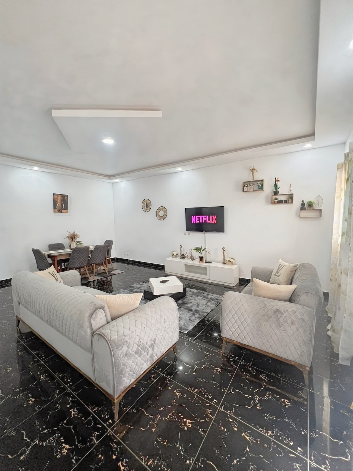 Séjournez en plein cœur d'Abidjan dans ce sublime appartement neuf, paisible, chaleureux, décoré avec goût dans des tons naturels et une ambiance moderne propice à la détente. Cet appartement spacieux et entièrement privatisé est situé au 2ème étage d’une résidence calme et sécurisée, parfait pour un séjour professionnel ou des vacances reposantes. Le logement est situé à 25 minutes du Plateau, 35 minutes de l’aéroport et à 10 minutes d’Abidjan Mall. A proximité de nombreuses commodités.