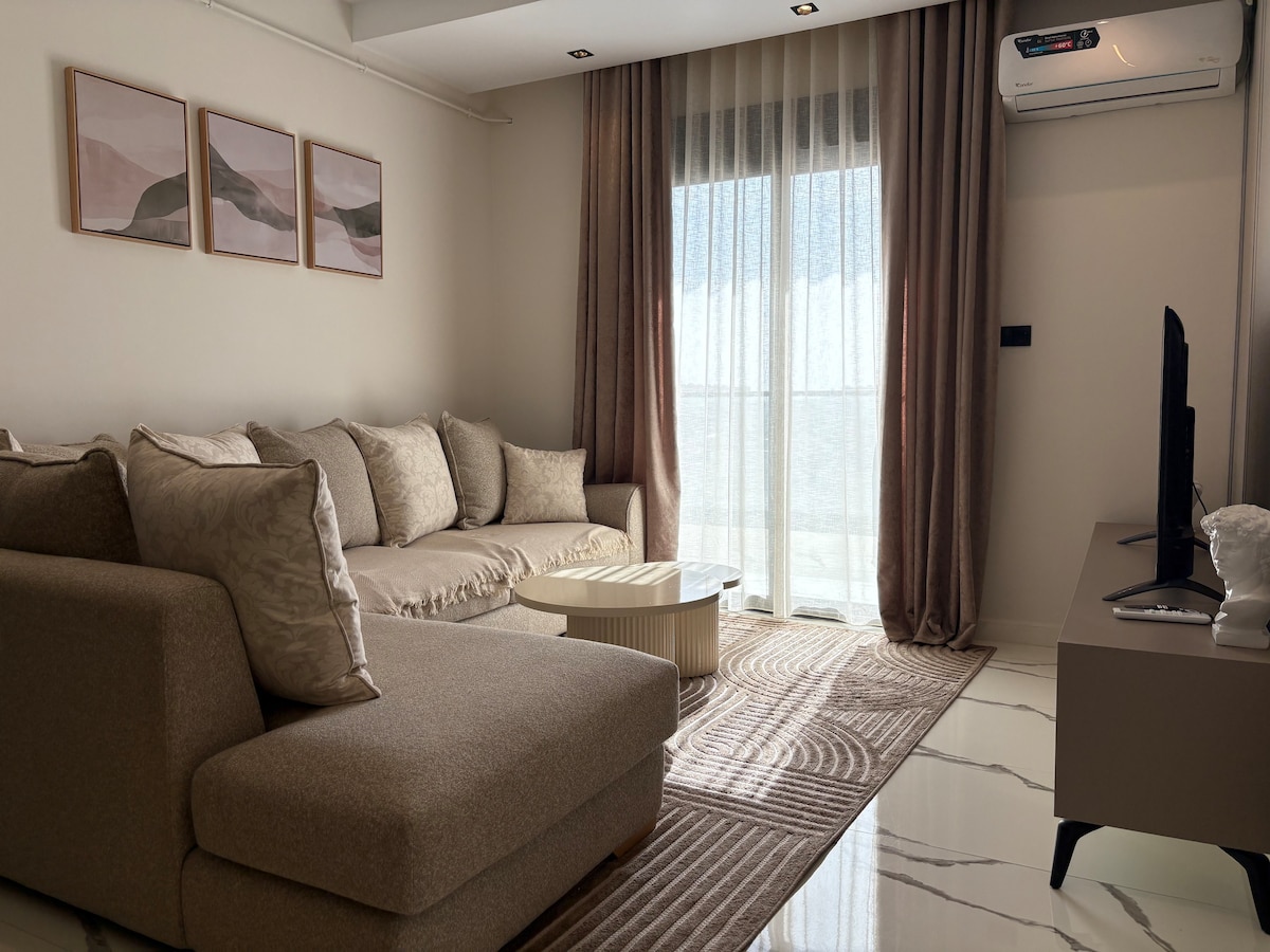 Apartamento moderno en el corazón de Akid Lotfi, Orán A pocos metros del hotel Le Méridien, este apartamento ofrece 2 dormitorios (cama doble, 2 camas individuales, colchón adicional), una gran sala de estar con Smart TV de 50", calefacción central, cocina equipada, lavadora, Wi-Fi, secadora y plancha. Excelente ubicación, cerca de tiendas y atracciones. Perfecto para una estadía cómoda, ya sea por negocios o por placer. ¡Reserva ahora!