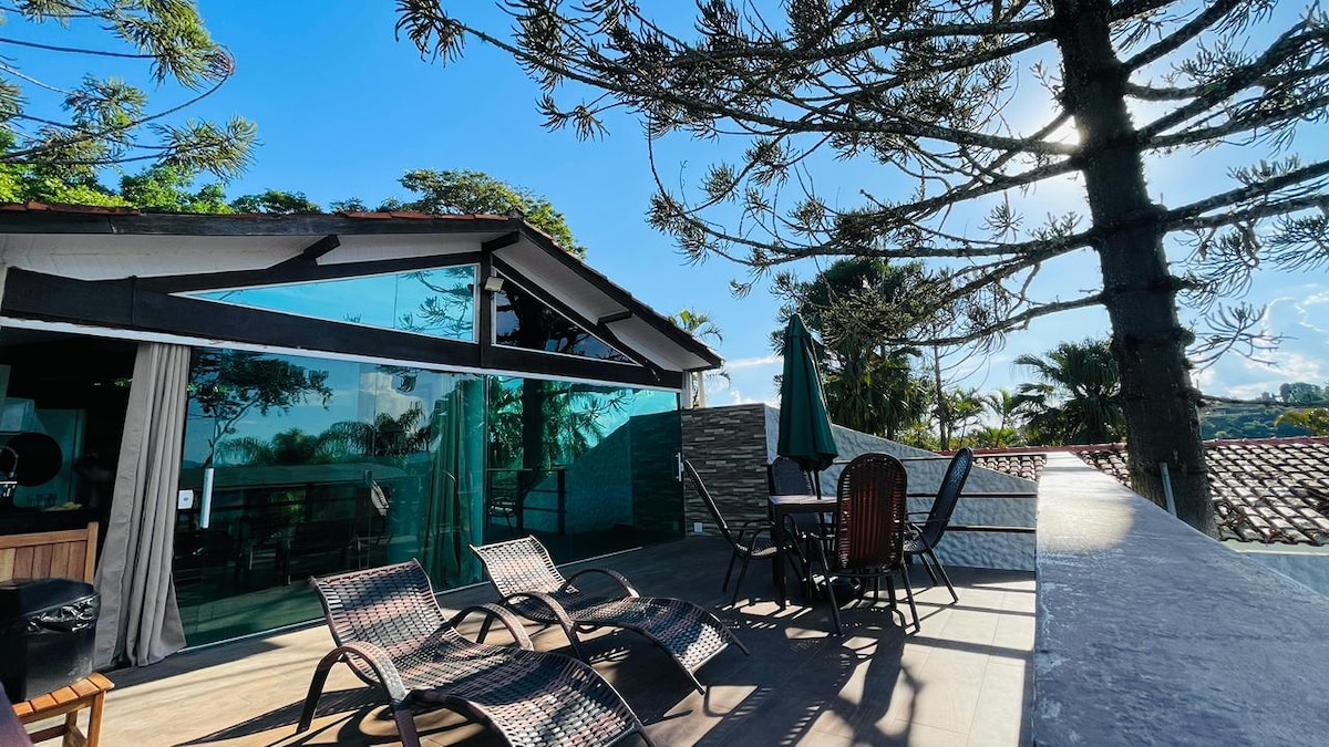 ¡Aquí encontrará el equilibrio perfecto entre naturaleza y comodidad! Estamos ubicados a solo 1 hora de São Paulo | 20 minutos de Mogi Shopping | 40 minutos de São José dos Campos. ¡Lugar ideal para quienes buscan calidez y tranquilidad! ¡Al sonido de la cascada que pasa junto a la cabaña y con una vista privilegiada del bosque, es común ver familias de titíes en busca de plátanos y tucanes posándose en los árboles!