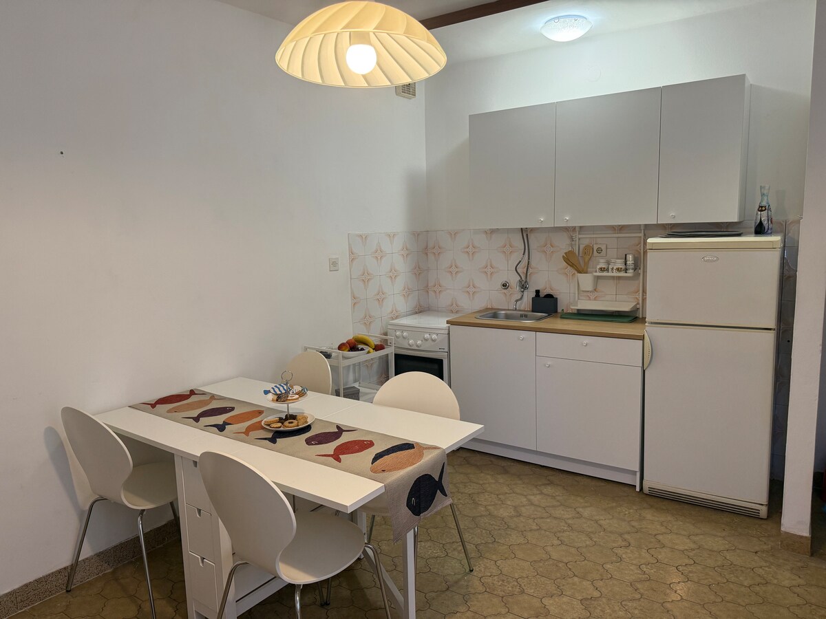 El apartamento está situado en la segunda planta de la antigua casa de piedra junto al mar. Está a 5 minutos a pie del paseo marítimo y justo encima de la playa. Cuenta con cocina totalmente equipada, un dormitorio, una sala de estar, un baño y un balcón privado con vistas al mar y a la isla de Biševo. Está equipado con TV LCD, aire acondicionado, wifi, ventilador de techo en el dormitorio (en invierno, calefacción si es necesario). Con el alquiler del apartamento viene la posibilidad de utilizar un kayak de dos plazas durante la estancia.