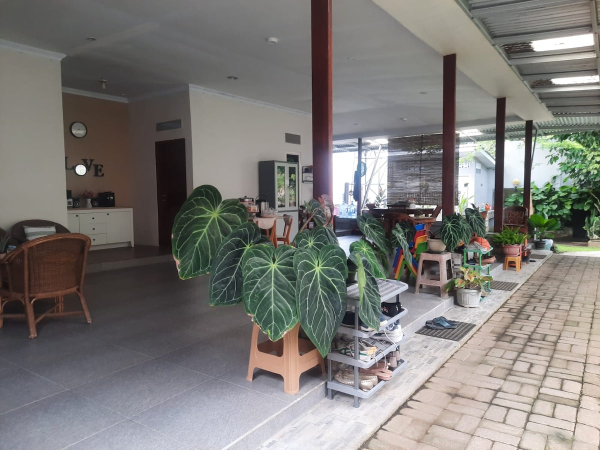 Tempat Asri dan nyaman dengan konsep terbuka (open space) untuk menginap dan santai bersama keluarga atau teman. lokasi strategis pinggir jalan protokol Arnold Mononutu, sehingga mudah untuk akses ke bandara, pusat kota dan daerah wisata lainnya. Tersedia 2 kamar tidur untuk 4 orang, full AC, free Wifi, 2 kamar mandi dalam dengan water heater, 2 kamar mandi luar, dapur sederhana dan kulkas, 1 TV Smart, gratis 1x sarapan ringan makanan tradisional, tersedia meja tenis dan area parkir gratis.