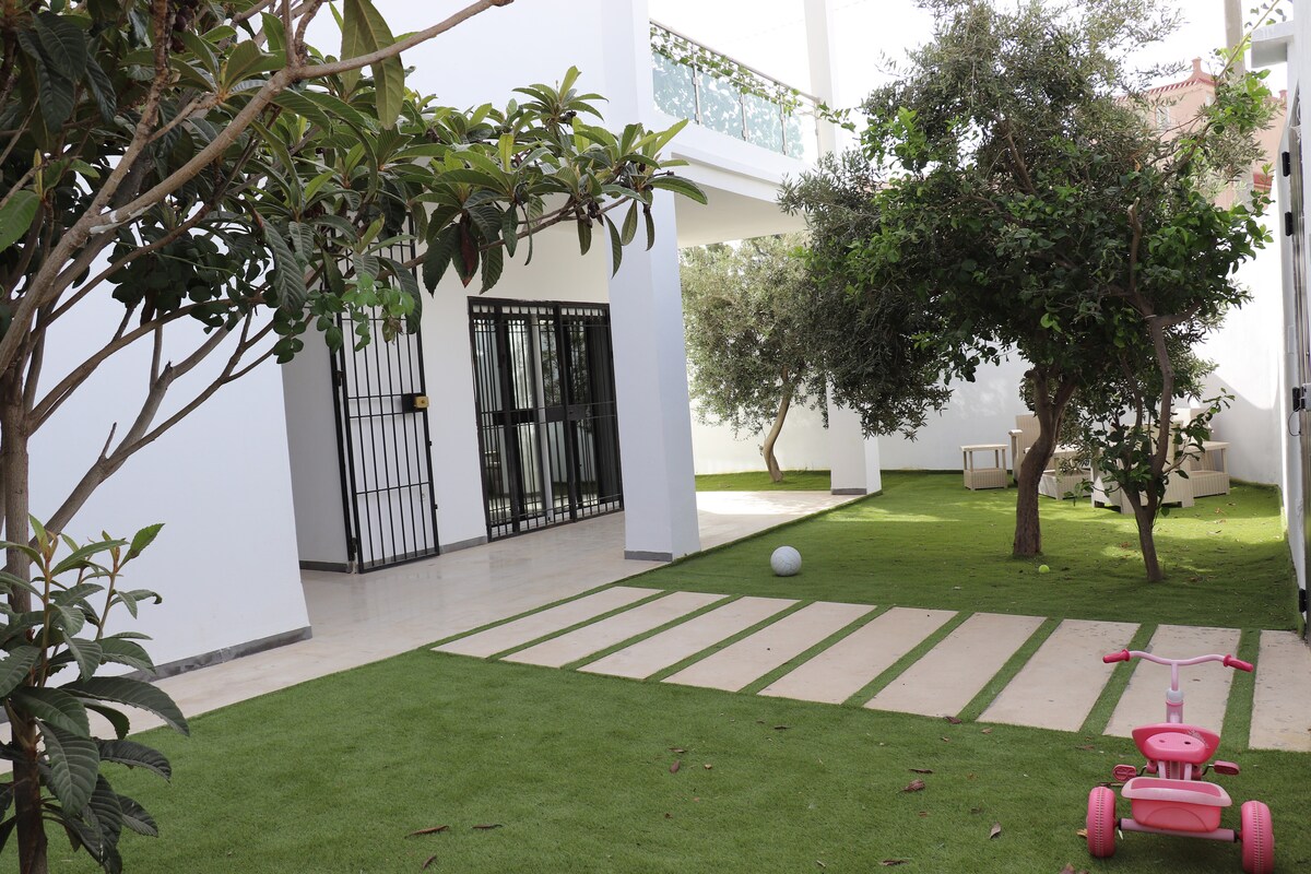 A modern and fully equipped house with nice garden in a close proximity to city center and Bizerte's touristic area and direct access to the beach. The property comprises a master bedroom with private bathroom, two bedrooms with double beds, a main bathroom, an open kitchen with fully fitted appliances and a living space with a bay window opening to the terrace and garden.