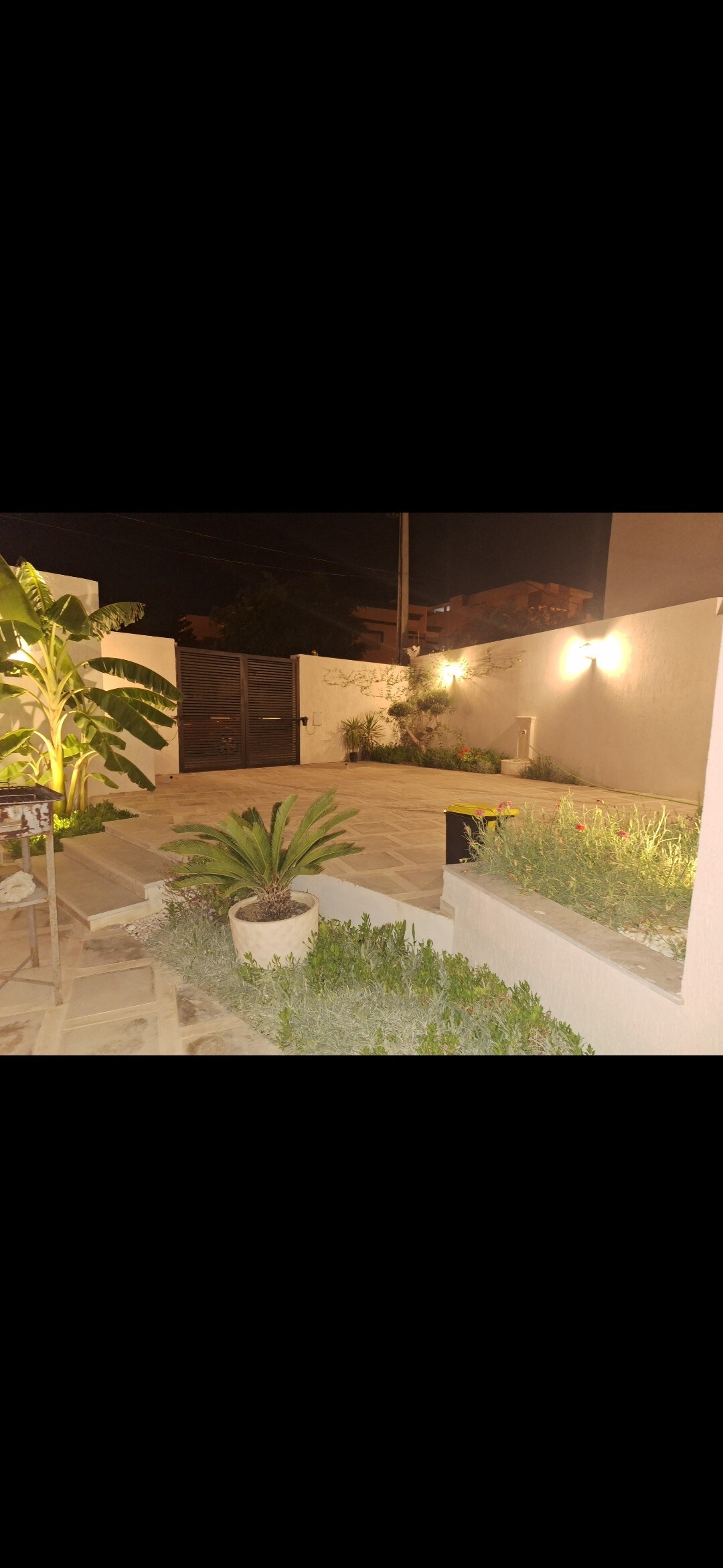 Type de bien: Villa (RDC: S+2pieces) , une cours commune entre deux villas Chambre à coucher (un grand lit) Salon (2 canapés) Petite chambre (un seul lit) Caractéristiques ( chauffé, Climatisé, éclairé, meublé, wifi, TV, Lave linge…) Environnement (commodités) : écoles, commerces, axes routiers, espaces verts, Hopitaux, Banques, Poste... Transports : Bus Plage: 15min à pied Aéroport: 45min en voiture (Possibilité de réserver un chauffeur avec des frais supplémentaire)