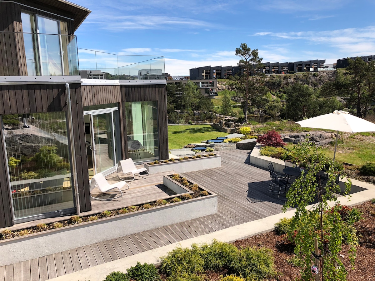 Lujosa casa en Troldhaugen en el vecindario de Edvard Grieg. Amplio y moderno y situado entre el centro de la ciudad y el aeropuerto (10 minutos en cada sentido). Barrio tranquilo y acogedor. Acceso al agua con una caseta de botes propia con kayaks que se pueden utilizar. Cargo de coche eléctrico y gran espacio de estacionamiento. Camas: 3 camas dobles 5x individuales (dormitorios renovados después de tomar fotos)
