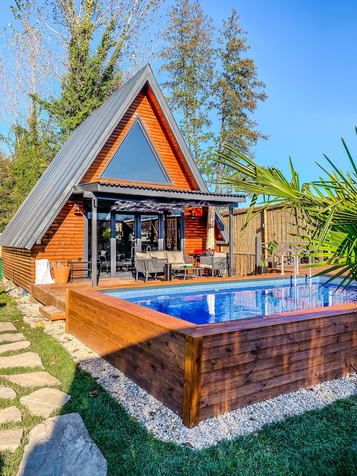 Cabañas ecológicas vacacionales en la naturaleza con patio