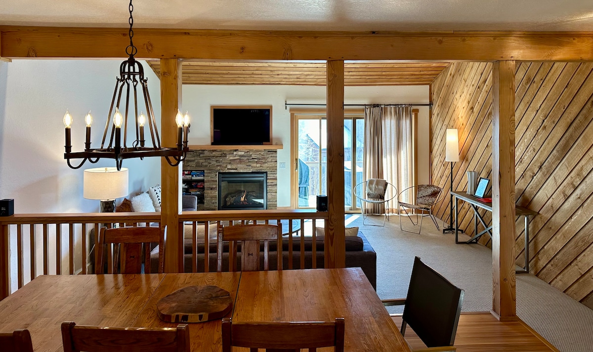 Ubicación ideal para una escapada tranquila a la montaña. Contempla la belleza natural directamente desde la cocina y la sala de estar gracias a los grandes ventanales o desde la espaciosa terraza. Este apartamento de Elkhorn está cerca de Dollar Mountain y tiene 2 dormitorios más un loft de 3 camas. La cocina se abre directamente al salón abovedado. La sala de estar se centra alrededor de una hermosa chimenea y tiene un televisor inteligente. Amplio comedor interior y exterior. Cada uno de los dos dormitorios tiene una cama tamaño queen, TV inteligente y un baño completo separado.