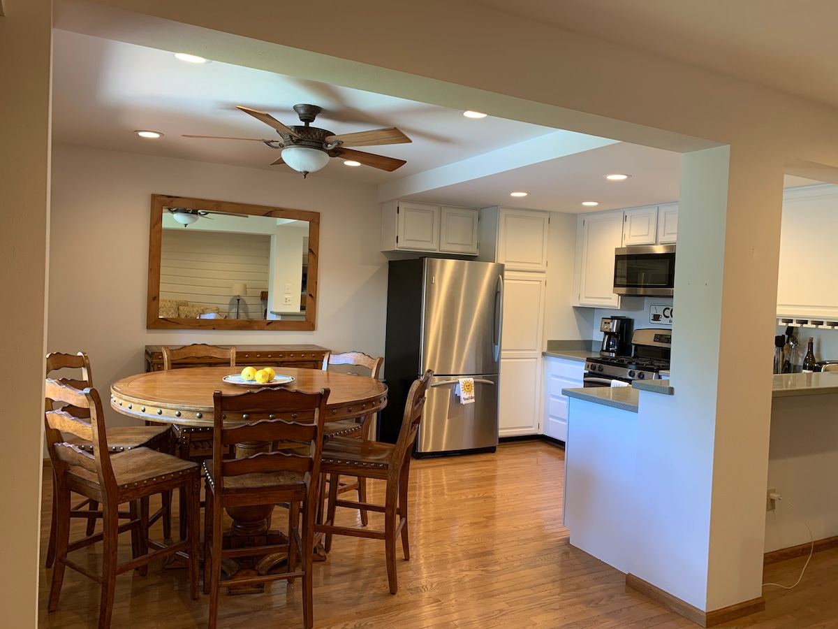 Apartamento de dos dormitorios muy bien reformado con golf, tenis, pickleball, natación, esquí alpino y nórdico, raquetas de nieve, patinaje sobre hielo, trineo, pesca con mosca, senderismo, ciclismo y buena comida cerca. Privilegios para huéspedes en piscinas SVEA, spas, sauna, parque, tenis y pickleball incluidos. Las piscinas/bañeras de hidromasaje/sauna y canchas de SVEA Harker y Village están abiertas por temporada. La piscina/bañera de hidromasaje de la asociación de propietarios está cerrada indefinidamente. Las magníficas atracciones naturales del valle de Wood River están cerca de esta cómoda casa familiar.