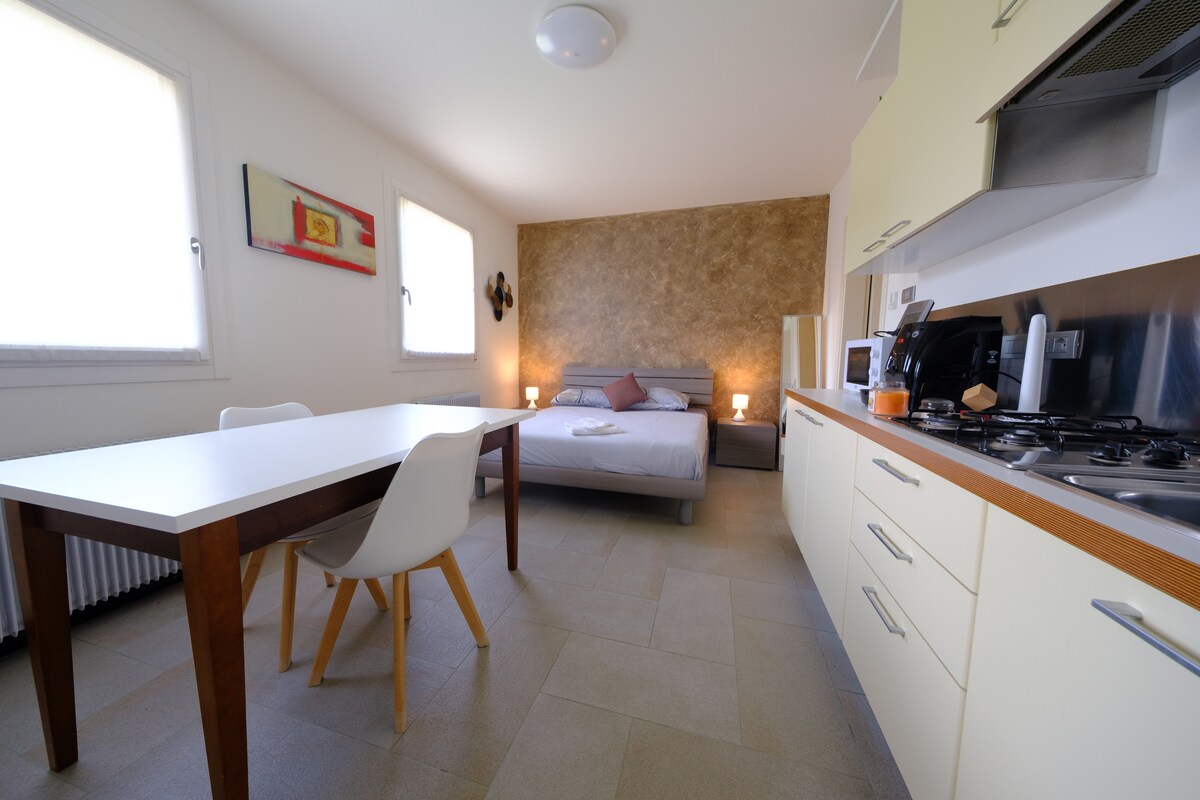 Diseñado por viajeros, para viajeros. Apartamento reformado en 2023, luminoso y totalmente equipado. Apartamento de dos habitaciones que consta de un espacio abierto (sala de estar y cocina), dormitorio doble y baño con ventana, complementado por dos balcones con vistas a los tejados de Údine. Las principales características son: autorregistro, smart TV de 60", Netflix, zona de trabajo, cocina con inducción, lavavajillas, microondas, horno, lavadora-secadora y aire acondicionado.