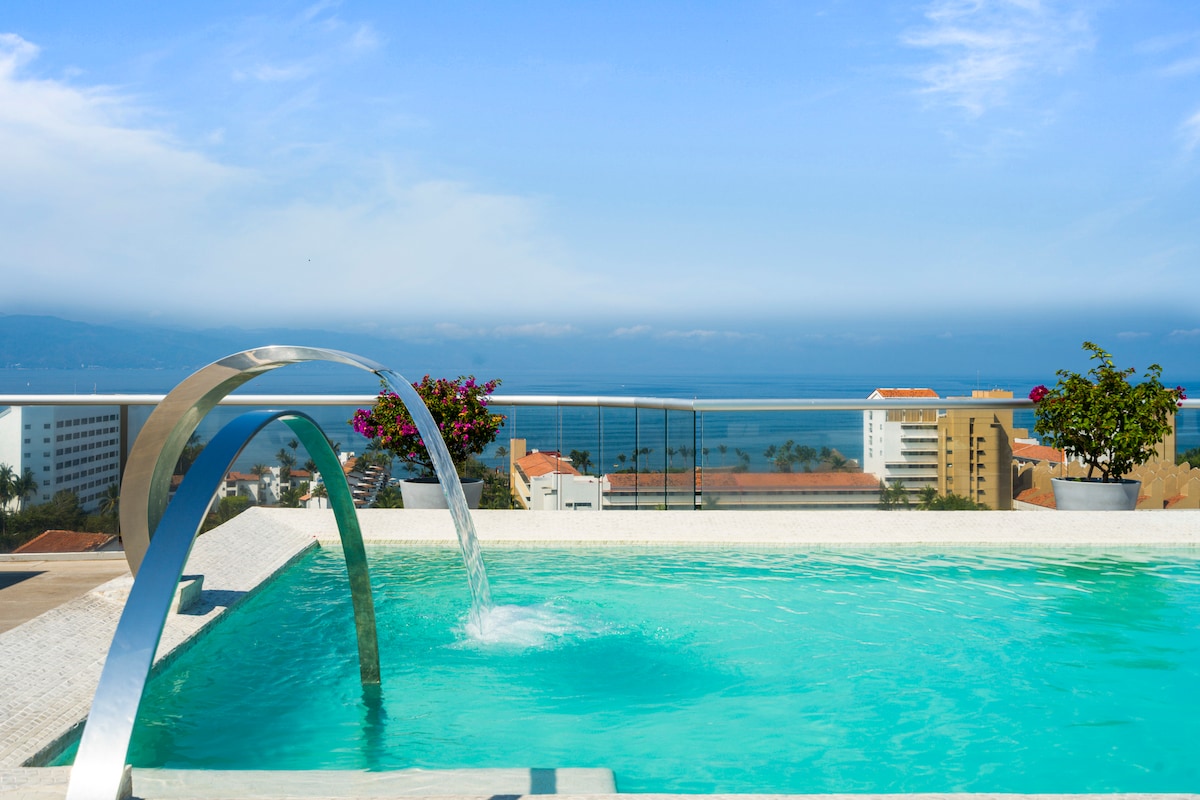 Impresionante unidad de esquina Orchid, 2 dormitorios, 2 baños, ofrece impresionantes vistas de la bahía de Bandares. Nuevo apartamento de lujo estilo resort que ofrece 2 piscinas grandes, gimnasio, restaurante y bar en la azotea, limpieza de la casa y seguridad las 24 horas. Ventanas plegables que abren el espacio por completo. Ubicado en Conchas Chinas. Acceso directo a la playa, a poca distancia a pie del centro de Puerto Vallarta y de la playa de Los Muertos. Conserje personalizado, recogida en el aeropuerto, compras de comestibles, actividades, masaje en el apartamento, chef privado y mucho más...