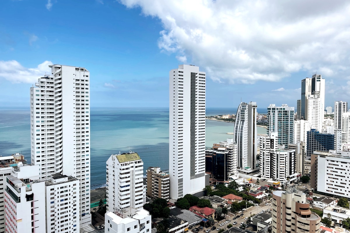 Apto Bocagrande | Vista 180° + Jacuzzi +2 Balcón