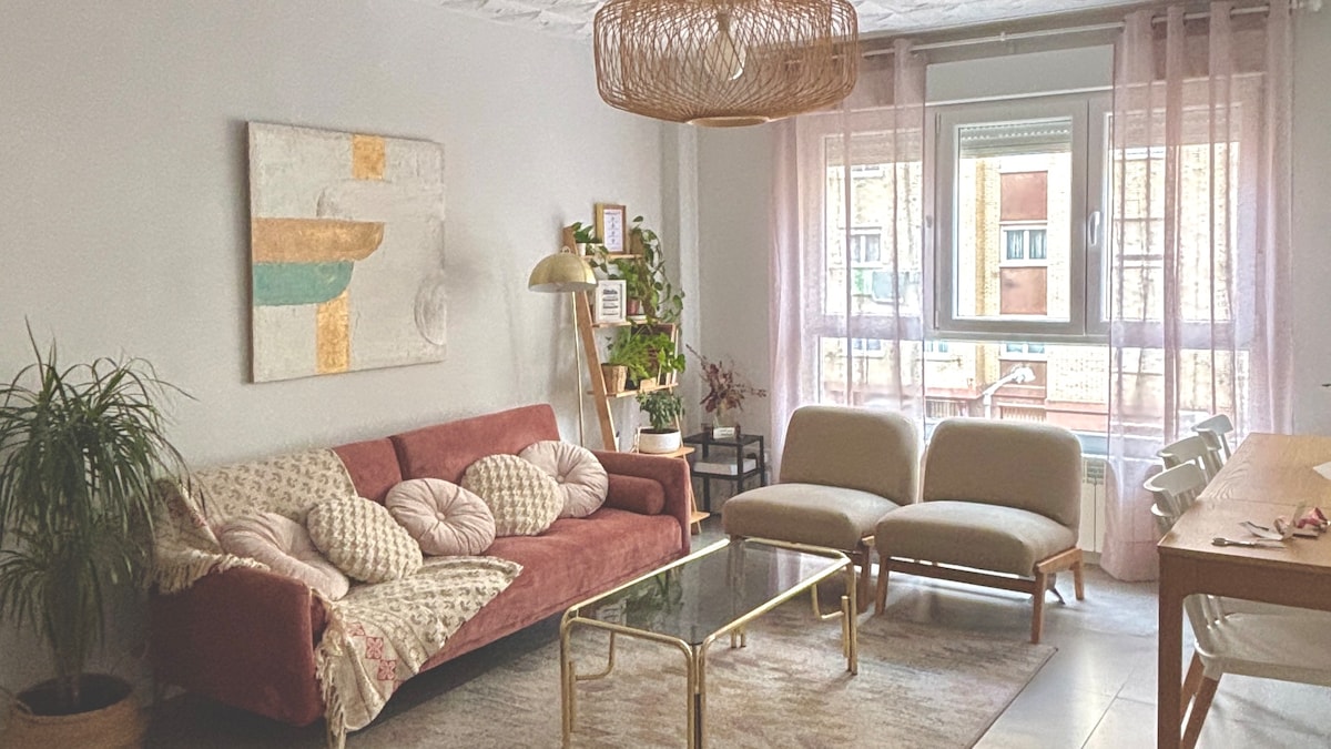 Disfruta de la sencillez y elegancia de este tranquilo, nuevo y luminoso alojamiento en el corazón de Zaragoza. ¿Quieres conocer El Pilar y El Tubo (zona de bares)? ¡Estás a cinco minutos! ¿Ir más lejos? ¡El Tranvía te lleva! ¿Descansar? Las habitaciones y el salón están diseñados para relajarse. ¿Espacio para trabajar? Dispones de dos escritorios. ¿Prefieres cocinar? Hay una cocina equipada y el Mercado Central a dos minutos. ¿Mejor?: ¡Imposible! (Importante acordar tu hora de llegada)