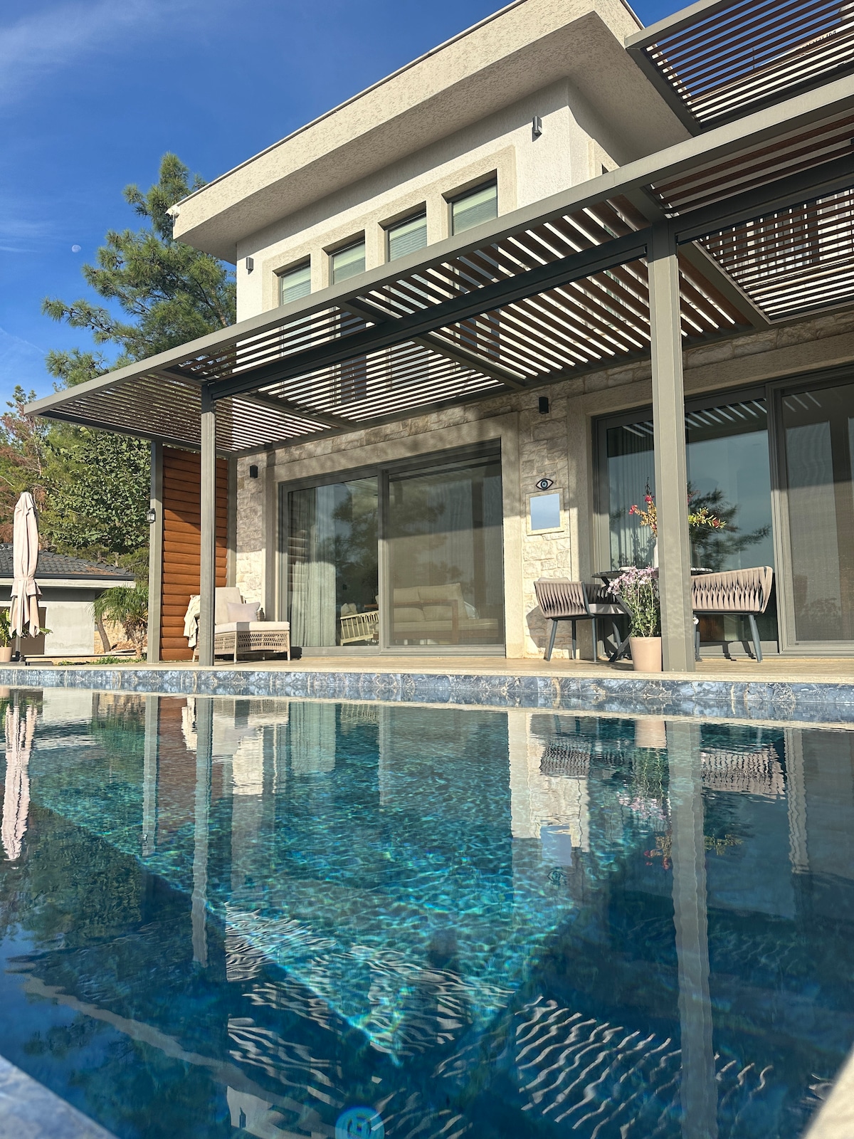 Merkezi konumdaki bu ultra lüks villa; 3 yatak odası, 4 banyo, tam donanımlı mutfak, özel havuz, muhteşem bir bahçe ve 2 araçlık kapalı otopark sunar. Tüm odalarda klima vardır, ayrıca villada akıllı TV, süper hızlı Wi-Fi, çamaşır ve giyinme odası bulunur. Haftalık ücretsiz temizlik ve tam zamanlı destek hizmetiyle keyifli, sorunsuz bir tatil deneyimi yaşarsınız. Kış aylarında yerden ısıtma sistemiyle konforunuz tamamlanır.