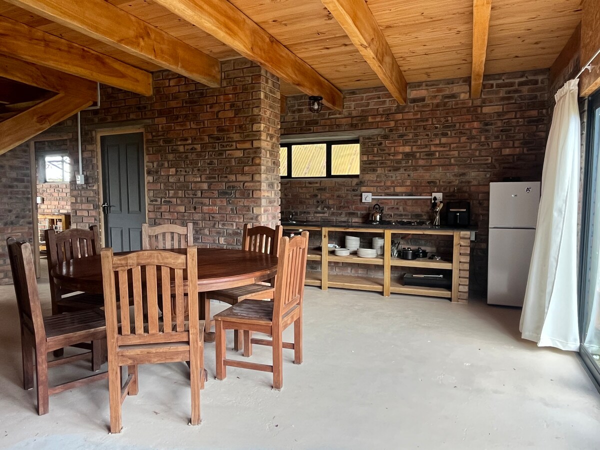 Ed's Place es una encantadora casa de campo independiente con tres dormitorios con baño, cada uno con una cama tamaño king. La sala de estar incluye una cómoda sala de estar con TV, una gran mesa de comedor y una cocina bien equipada. Los muebles de buen gusto dan una sensación de comodidad rústica de granja. La pintoresca casa de campo con tejado de paja, situada en una cresta alta en la granja de caza de Kaba, ofrece una vista única y espectacular sobre las praderas onduladas, el bosque costero, el vasto campo de dunas de Alejandría y el océano.