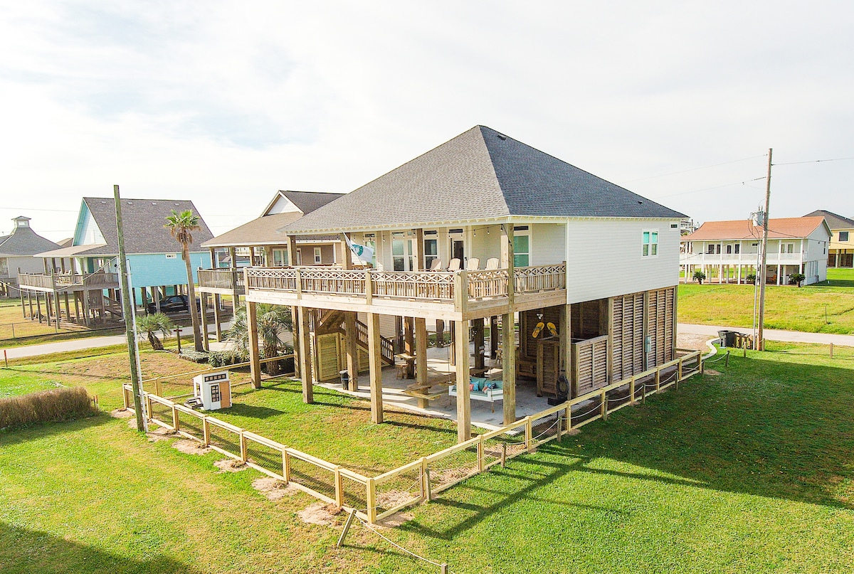 SEASIDE PARADISE es la casa perfecta junto a la playa en la costa del golfo. Esta deseable casa construida a medida se encuentra en la codiciada subdivisión Emerald 2 y está situada en el centro de restaurantes, tiendas de comestibles y todas las actividades que Crystal Beach tiene para ofrecer. Es el lugar ideal para relajarse, entretenerse y disfrutar de las vistas y brisas del golfo. A segundos del acceso a la playa y con mucho espacio para disfrutar y descansar en el gran altillo equipado con una gran cocina al aire libre, que incluye un bar de 3 lados.