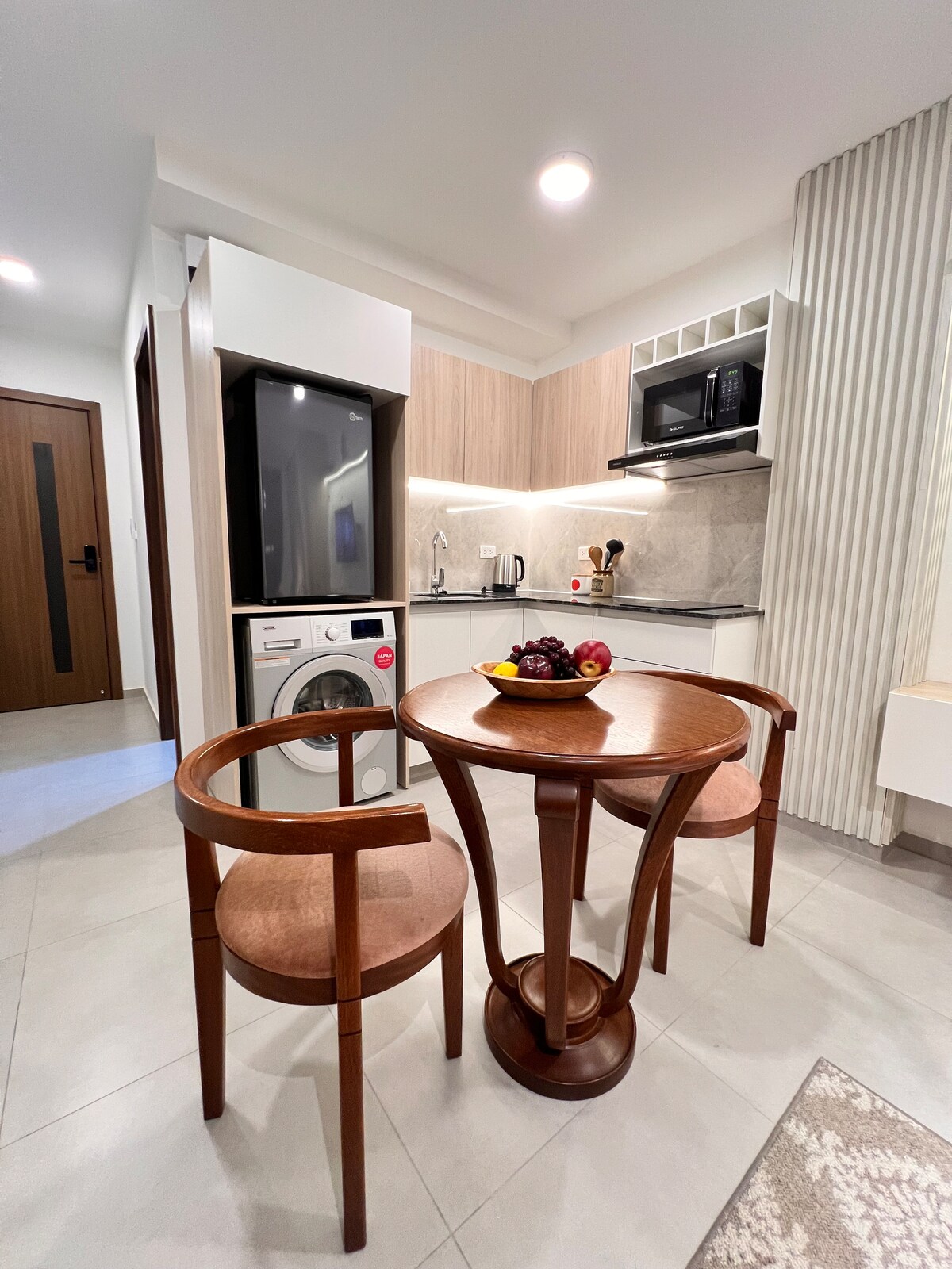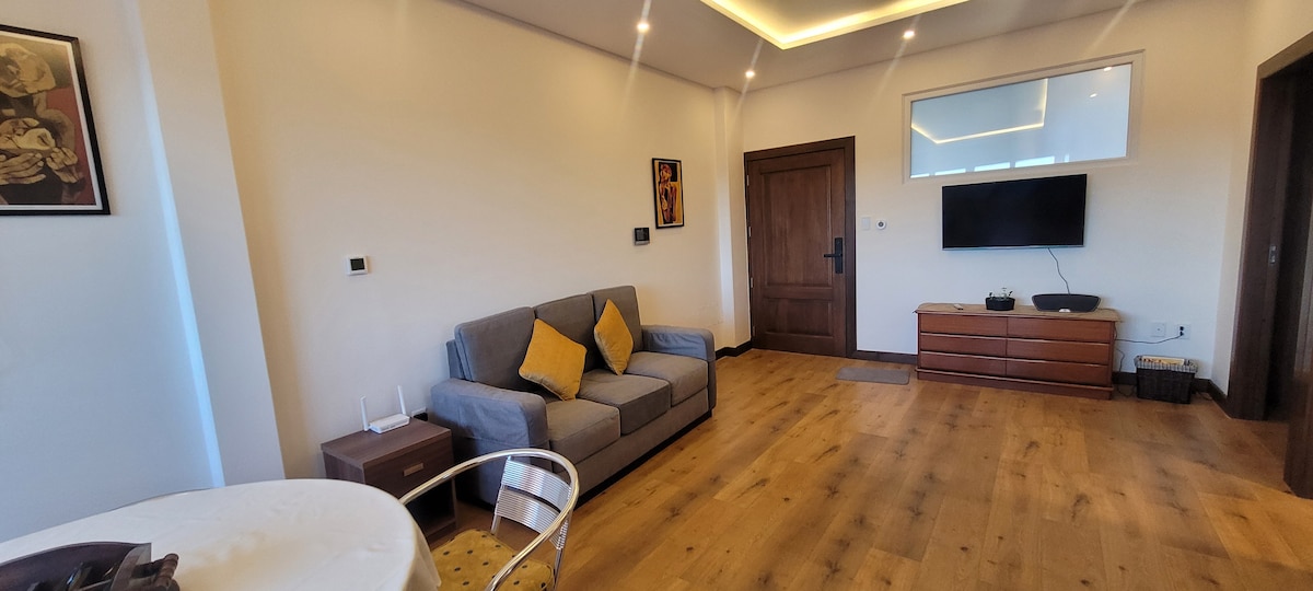 Disfruta de una estancia placentera en este departamento moderno con vista espectacular, ideal para descansar o trabajar con total comodidad. Cuenta con areas de relax (piscina, sauna seco, vapor y gimnasio), cada detalle ha sido pensado para ofrecerte una experiencia acogedora, práctica y agradable. Ubicado en una zona estrategica, tranquila y segura, cerca de cafés, embajadas, bancos, supermercados, restaurantes y transporte público. Perfecto para parejas, viajeros o estancias por trabajo.