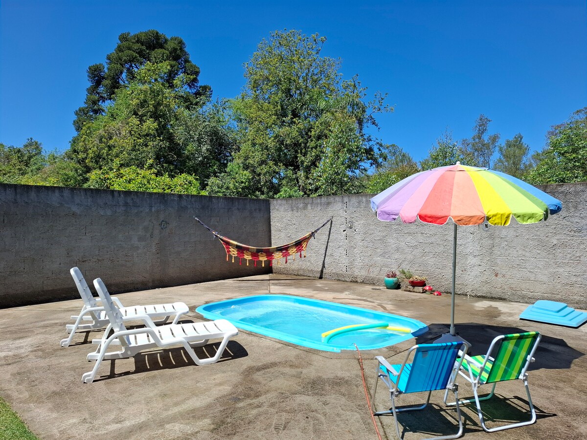 ¡Relájese en este espacio tranquilo y elegante! El barrio está compuesto por casas familiares, muy tranquilo y cerca del Parque Municipal de Chimarrão. Además de toda la comodidad y el estilo que ofrece la casa, el huésped puede disfrutar de todo el patio que tiene un hermoso césped frente a la casa y puede estacionar el coche con total seguridad. Puedes traer a tu mascota, ya que nuestro patio está vallado y la casa es muy abierta y ventilada.
