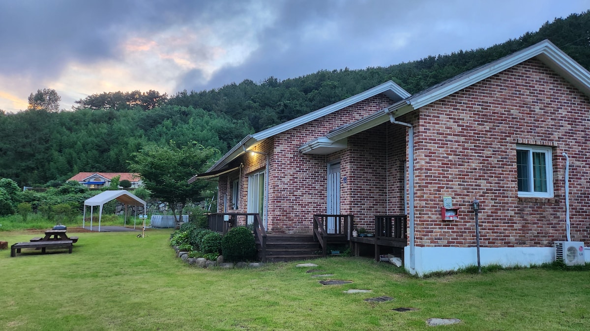 Situado en la ladera de una montaña en la parte superior del pueblo de Geurim, en Dundeok-myeon, cuenta con aire limpio y vistas frescas, y en el amplio césped y en el huerto, donde se pueden recoger verduras de temporada ecológicas. En verano, creo que es el mejor lugar para un espacio de descanso familiar donde puedes disfrutar de refrescantes juegos acuáticos en la piscina al aire libre del amplio patio, descansar en una hamaca entre árboles y disfrutar de un asado de cerdo en la parrilla. En los alrededores se encuentran el castillo de Dundeok, que conserva la historia y la cultura, y el Museo de Literatura de Cheongma.Se encuentra cerca de la montaña Sanbang, el templo Sanbang y el estanque de flores de loto, donde florecen los crisantemos en otoño. Al venir aquí, podrá disfrutar de un tiempo de descanso reparador con la naturaleza pura y, al mismo tiempo, visitar los lugares de interés cercanos. Puede comunicarse con los huéspedes en cualquier momento por teléfono (010 3861 2415) y mensaje de texto