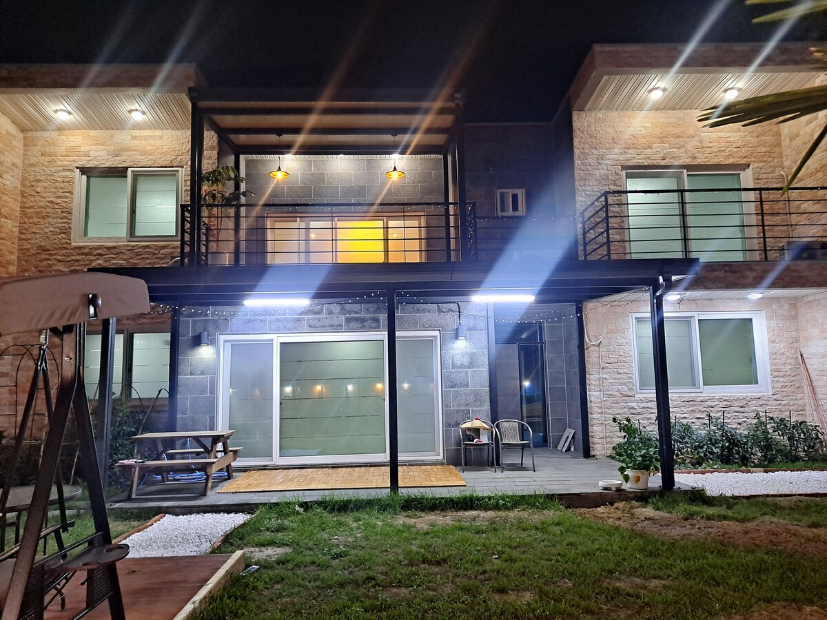 Es un anexo de una casa unifamiliar ubicada en una zona residencial unifamiliar tranquila. En el gran césped del patio hay 2 perritos pequeños y carpas en el estanque. Puede hacer una barbacoa en el césped y divertirse en el karaoke subterráneo (está equipado con aire acondicionado y calefacción). El paisaje de la mañana es muy bonito. Disfruta de la naturaleza en una mesa de jardín tranquila y pacífica con una taza de café. . . Varias flores siguen floreciendo y muriendo. El amplio campo detrás del edificio también es digno de ver, ya que el arroz cambia de verde a amarillo según la temporada ^ ^ * Check-in - 4 p. m. (el almacenamiento de equipaje está disponible desde la mañana) * Check-out - 12:00 * Barbacoa con fuego de carbón - 20 000 wones (incluso si llueve, es posible si el viento no es fuerte, y en invierno se enciende un calentador y una cortina cortavientos). * Karaoke subterráneo - Reglas de uso -Tarifa: 10,000 wones sin límite (nueva canción actualizada todos los días)/área para fumadores/bebidas alcohólicas, bebidas y alimentos no permitidos. * Ofrecemos un dispensador de agua, aire acondicionado, TV, cocina eléctrica, hervidor eléctrico, cafetera de granos, plancha, microondas, lavadora, tostadora, nevera, arrocera eléctrica, champú, acondicionador, gel de baño, toallas.