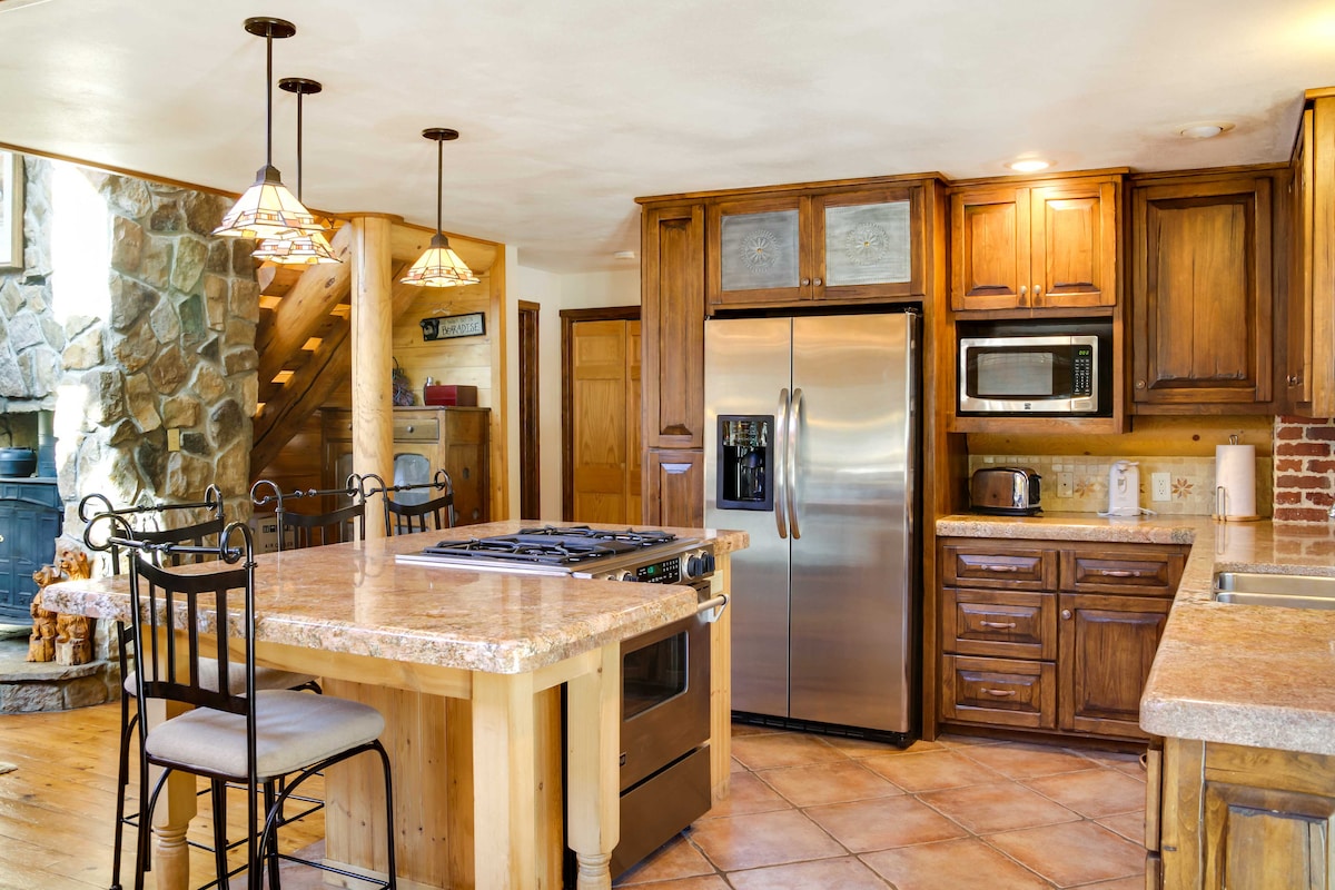 Trae a amigos o familiares a esta rústica y encantadora cabaña con mucho espacio. Esta cabaña actualizada cuenta con todas las comodidades que necesitarás durante tu estancia. «Casa Bonita» es acogedora, pero es el refugio perfecto para descansar y relajarse. Esta cabaña de un solo nivel tiene capacidad para 4 personas cómodamente y consta de 2 dormitorios y 2 baños. Esta cabaña tiene una terraza doble para disfrutar del aire libre. Esta cabaña incluye una bañera de hidromasaje en la cubierta inferior para relajarse de verdad y disfrutar del aire de la montaña. ¡Esta cabaña está a pocos minutos de la ciudad!