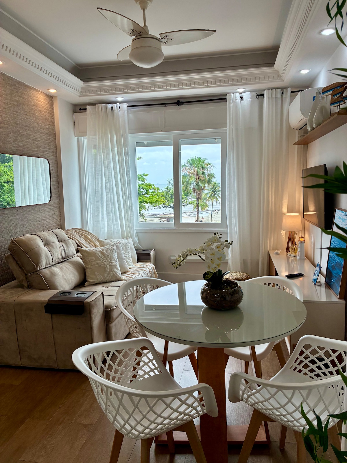 Aproveite o conforto deste apartamento beira-mar no Embaré, totalmente climatizado e decorado com móveis novos e de muito bom gosto. Cada ambiente foi pensado para oferecer aconchego, praticidade e uma experiência inesquecível. Da janela, a vista para o mar transforma cada momento — do café da manhã ao pôr do sol — em pura tranquilidade. Um espaço moderno, elegante e perfeitamente localizado na praia do Embaré, ideal para quem busca descanso, comodidade e o melhor de Santos.