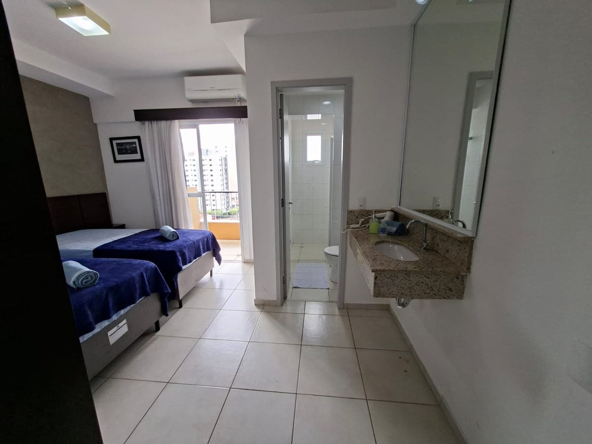 Nossa Studio tiene 45 m2 y una ubicación privilegiada en Bauru. Se encuentra junto a Bauru Shopping, en la calle de bares, restaurantes, cerca de Centrinho/Usp, CPO y FACOP. Es un espacio moderno y acogedor, lleno de estilo, comodidad y aire acondicionado. Seguro que tu reservación no traerá un alojamiento sencillo, sino una experiencia maravillosa y notable. El edificio tiene una entrada las 24 horas, gimnasio, mercado y lavandería.