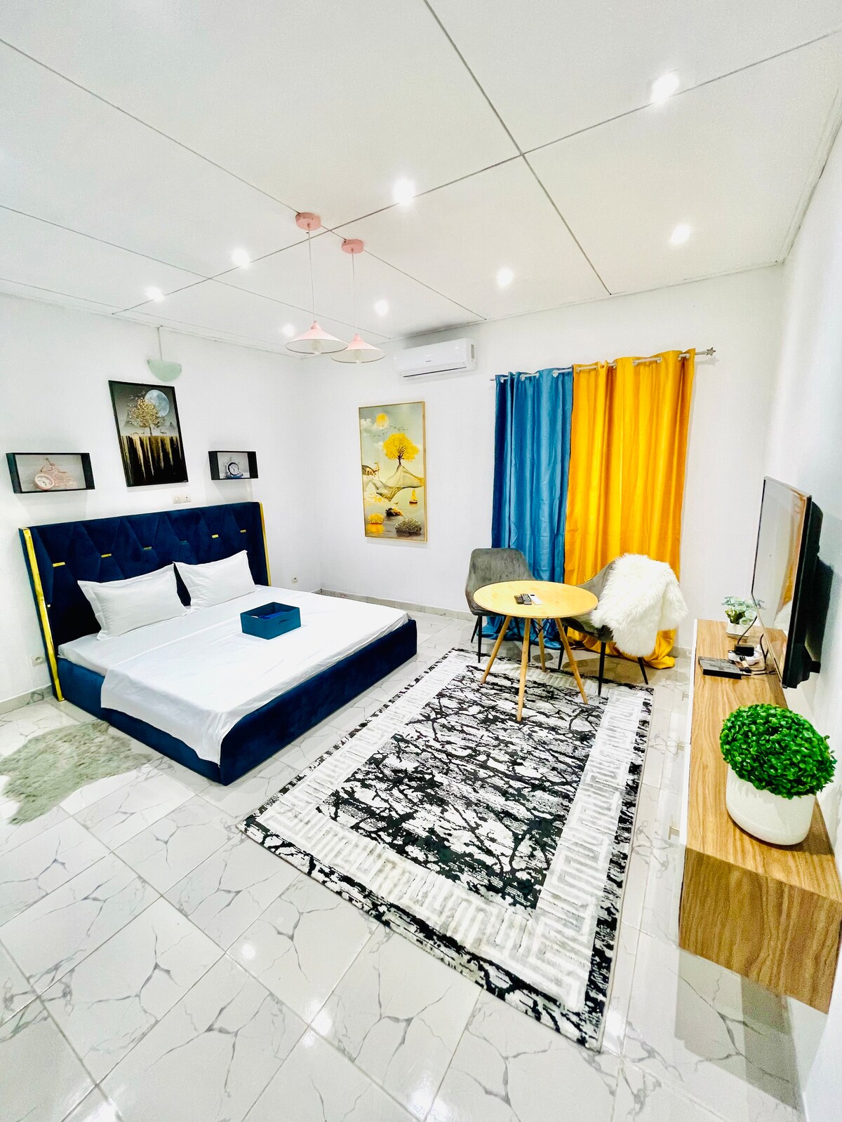 Venga a descubrir nuestro apartamento totalmente amueblado y equipado, ideal para una estadía corta o larga. ✅1 habitación con cuarto de baño y 1 despacho ✅1 Comedor ✅1 Sala de estar ✅1 Cocina ✅1 aseo de visitante ✅2 splits ✅ 1 Estacionamiento interno ✅servicio de vigilancia ✅ 1 Televisión ✅ 1 Wifi ✅1 Cocina totalmente equipada Estamos deseando darle la bienvenida en nuestro apartamento y ofrecerle una estancia cómoda,segura y agradable en Bouaké