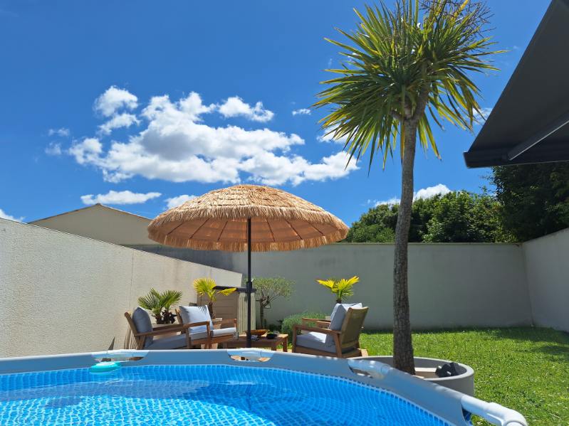 Este alojamiento es adecuado para familias, La casa está climatizada. Cuenta con tres dormitorios. Es de una sola planta con jardín de 150 metros cuadrados, terraza y piscina de 3 metros de diámetro. La casa tiene 83 metros cuadrados , el salón y la cocina equipada abierta goza de una hermosa luminosidad. Dos plazas de aparcamiento gratuitas. Desde esta ubicación se encuentra a 12 minutos de LA ROCHELLE, a 15 minutos de la isla de ensueño.