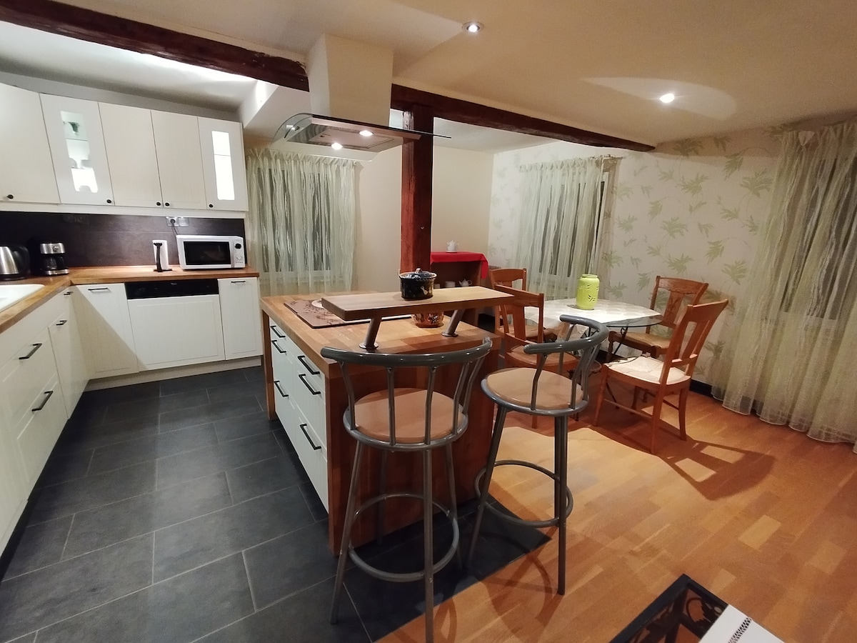 Disfrute de la tranquilidad de los grandes espacios montañosos entre campos y bosques. El alojamiento está idealmente situado entre Saverne, Haguenau y Estrasburgo, 3 ciudades accesibles por carril bici directamente desde el alojamiento. Alojamiento completo, cocina totalmente equipada, máquina de café Nespresso, etc., jacuzzi privado. Se proporcionan toallas y sábanas. El baño y el aseo son accesibles desde la habitación principal. La habitación de arriba está bajo el altillo, sin ventanas Los alrededores de la vivienda todavía están en obras