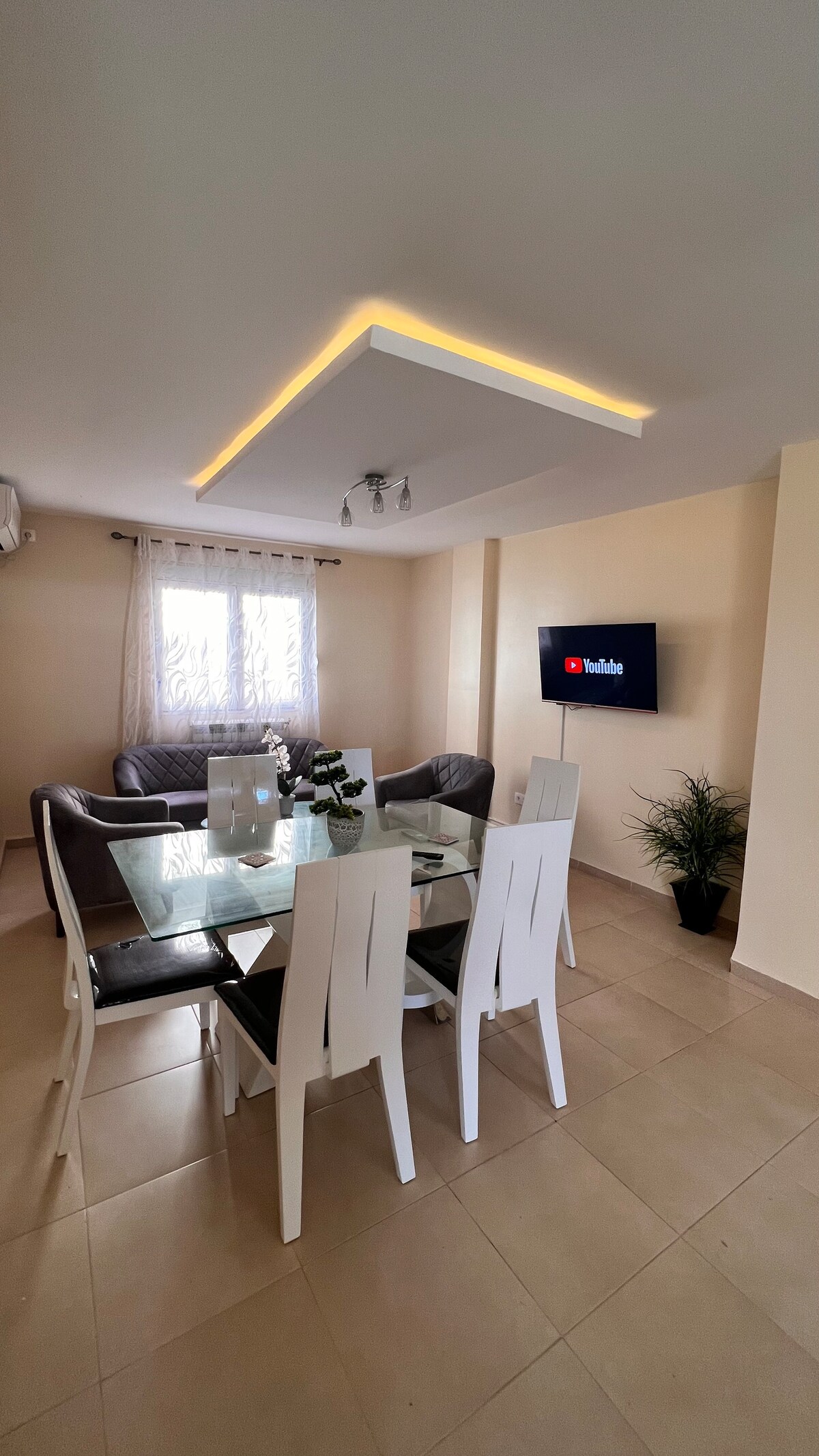 Profitez d’un appartement 3 pièces au deuxième étage,très bien équipé, offrant une ambiance douce, cosy et soignée, idéalement situé à Val Hydra dans un quartier calme et très sécurisé. À 2 minutes des meilleurs cafés et restaurants de la ville. Salon équipé Tv 43 , climatiseur LG et deux chambres (chambre parentale climatisée, tv et balcon + chambre de deux lits), cuisine et salle de bain moderne (machine à café, micro-ondes, lave-linge,ustensiles. Eau H24.Ambiance raffinée. Parking gratuit.
