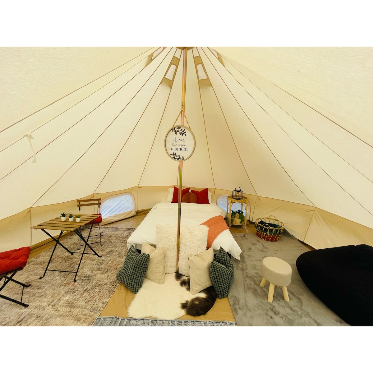 Escápate a nuestra encantadora tienda de campaña glamping, a solo 5 minutos en coche de Bragg Creek, Alberta. Explora los senderos que rodean la propiedad. Disfruta de la cocina al aire libre con nuestra parrilla, propano y kits de cocina. Relájate junto a la chimenea con una amplia madera para las noches iluminadas por las estrellas. Relájate en la hamaca y escucha la sinfonía de la naturaleza. En el interior, encuentra muebles y sábanas de lujo para una estancia acogedora. Reserva ahora para una escapada mágica en la naturaleza de Alberta. Crea recuerdos duraderos y vuelve a conectarte con la naturaleza.