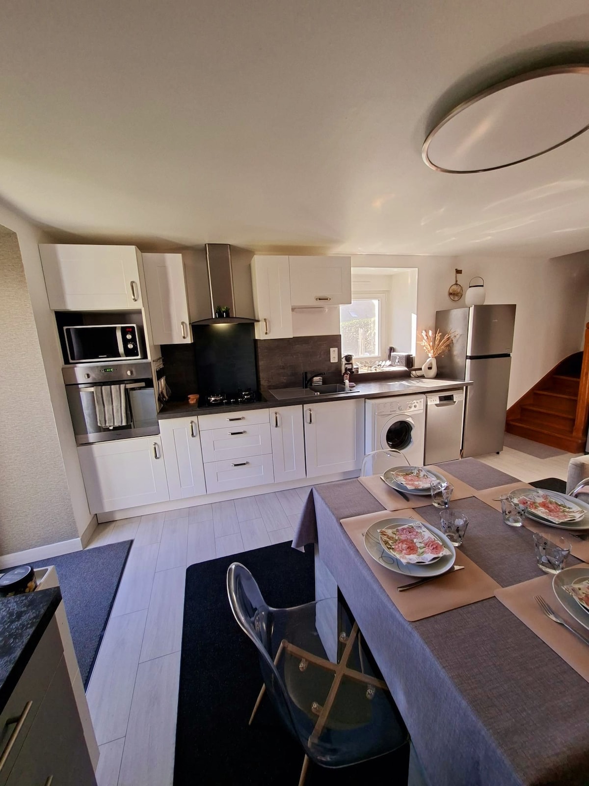 Se alojará en una casa de campo reformada en un entorno tranquilo y relajante. Encontrará una cocina totalmente equipada, una sala de estar amplia y cómoda y cada habitación tiene su baño privado con inodoro. Podrá disfrutar de las playas situadas a 30 minutos, de rutas de senderismo, de lugares turísticos emblemáticos de Bretaña (golfo de Morbihan, menhires de Carnac, ...). Estaré a su disposición para informarle sobre las posibles actividades.