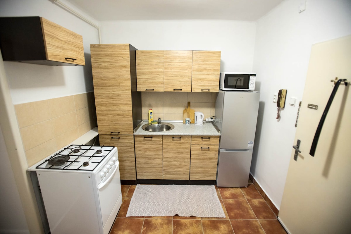 El apartamento de una habitación está a poca distancia a pie de muchos restaurantes, clubes y lugares de interés de Bratislava (por ejemplo, la plaza principal, la ópera histórica, el antiguo ayuntamiento). Fácil acceso a toda la ciudad desde las estaciones de transporte público cercanas. Cocina totalmente equipada con utensilios y utensilios de cocina básicos. Cama tamaño queen plegable. Sofá plegable (desplegado tiene capacidad para una persona cómodamente). Baño con bañera. Se proporcionan sábanas y toallas.