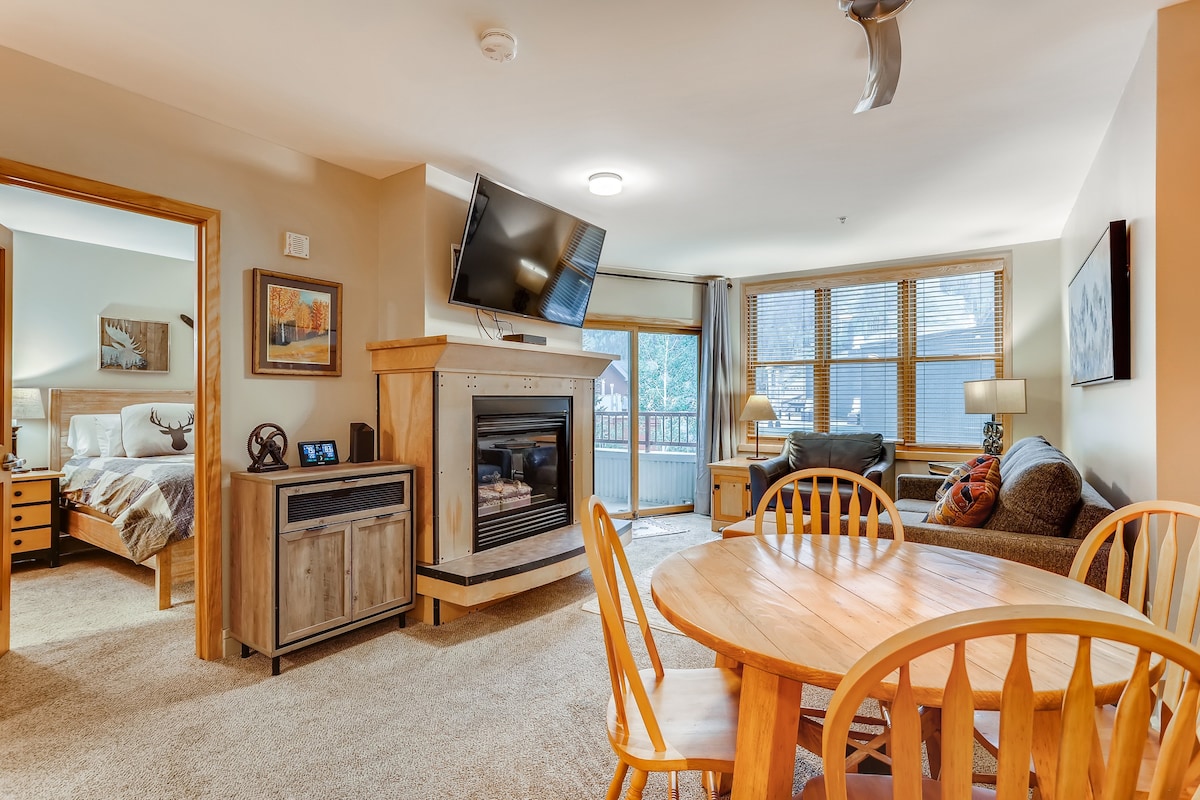 Te damos la bienvenida a la escapada a la montaña de tus sueños Este ático remodelado con acceso a pistas de esquí está a pocos pasos del telesilla Quicksilver y Main Street. Capacidad para 10 personas con 3 camas, 2 baños, 2 balcones, vistas a la montaña, abundante noche natural (y cortinas opacas en cada habitación). Disfruta de una cocina completa, chimenea de leña, wifi rápido, televisores 4K y ventajas del centro vacacional: piscina climatizada, jacuzzi, sala de vapor, sauna, gimnasio, sala de juegos, recepción/conserje, valet de esquí y más. El estacionamiento del garaje está disponible por un cargo adicional.