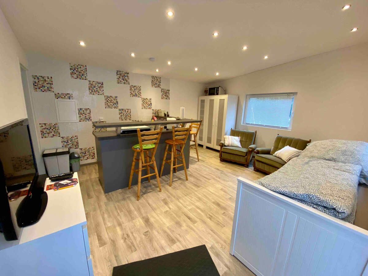 Te damos una cálida bienvenida a nuestro acogedor apartamento. El apartamento se encuentra en una tranquila calle sin salida con suficientes plazas de aparcamiento en el hermoso distrito de Hagen-Emst. Una entrada independiente con una terraza cubierta orientada al sur conduce a la sala de estar/dormitorio, cocina totalmente equipada y baño moderno con ducha a ras de suelo. Alrededores: - A poca distancia a pie del Stadthalle (10 minutos), centro de la ciudad de Hagen (15 minutos). Universidad de Ciencias Aplicadas Südwestf., Fern-Uni (a 10 minutos en coche). Paradas de autobús en el sitio.