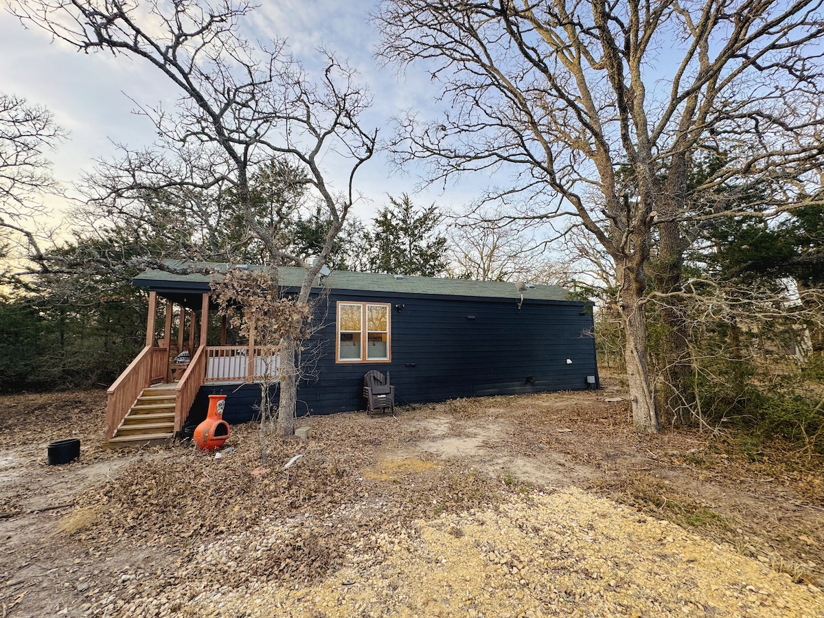 Pequeña cabaña negra en The Oaks | Se admiten mascotas, a 3 minutos del lago
