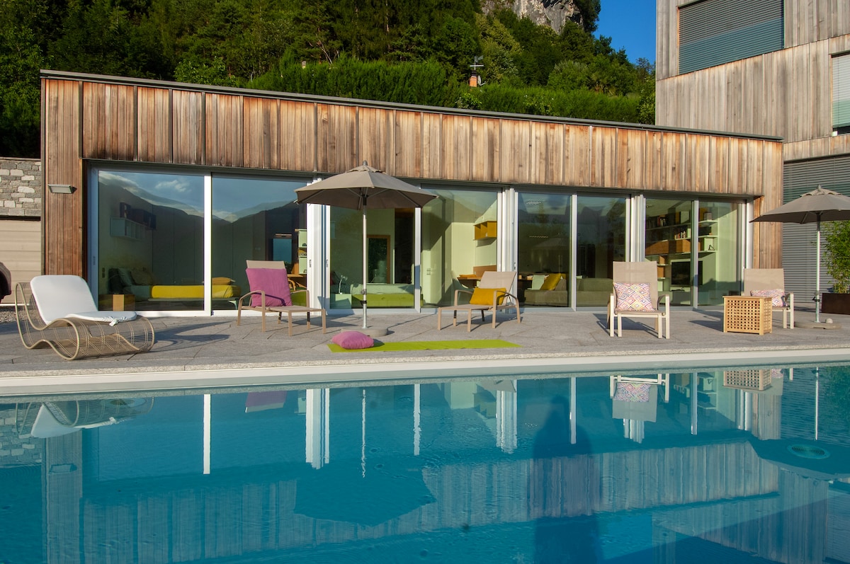 Impresionantes vistas al lago y a la montaña, «impresionante», «estupendo» y «relajante» son solo algunas de las palabras que dicen nuestros huéspedes. Sumérgete en la privacidad y el lujo, en la propiedad ultramoderna y con las mejores vistas del lago de Como. Haz clic en ❤️ en la esquina superior derecha para añadirnos a tu lista de favoritos. Piscina climatizada al aire libre, con vistas de 360 grados. A 5 minutos de Menaggio, pueblos de montaña, restaurantes de la granja a la mesa y un campo de golf de renombre. Diseñado por un famoso arquitecto italiano al estilo de las antiguas terrazas italianas.