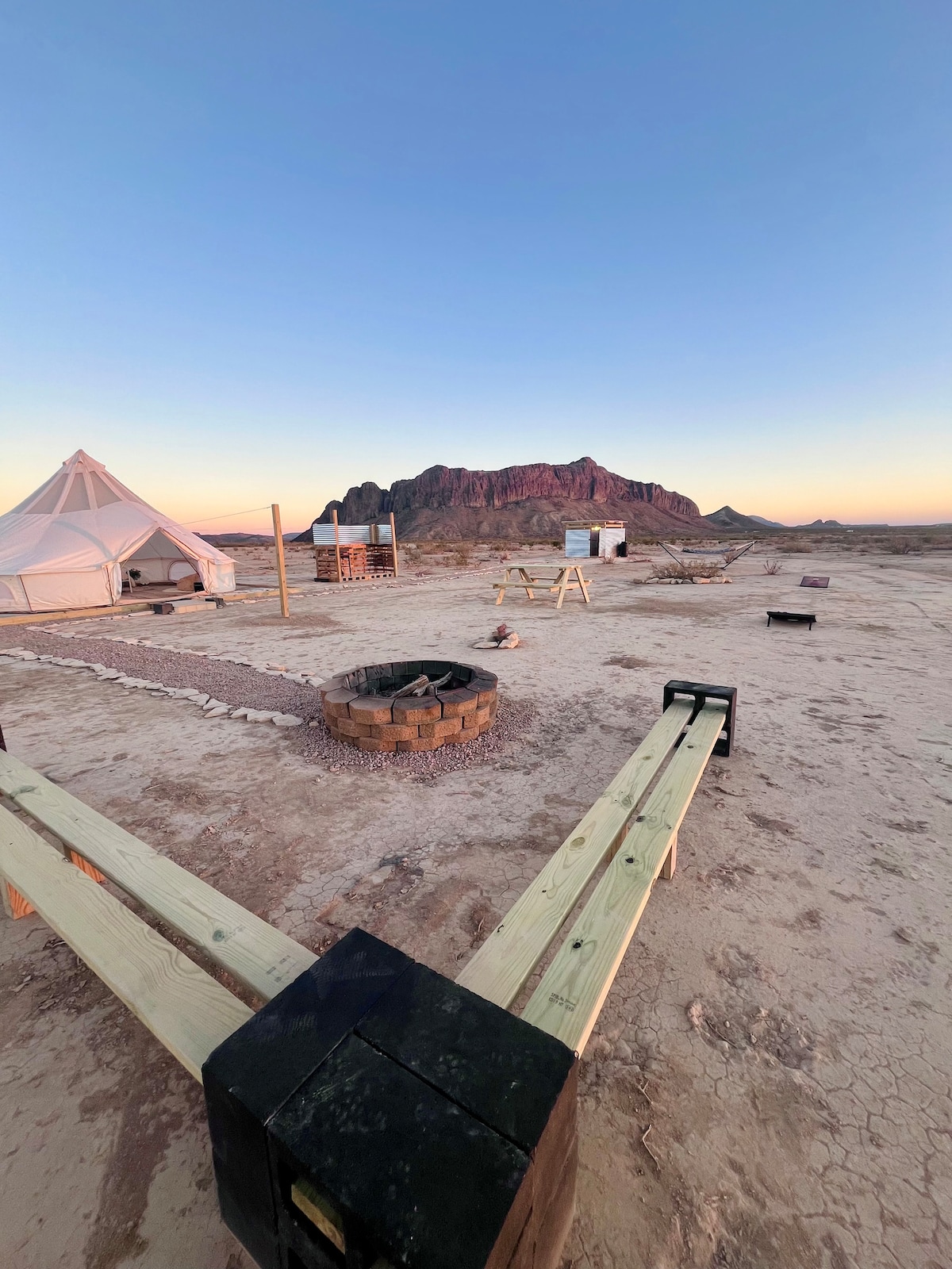 Come unwind your knotty soul in these spacious and secluded safari tents just 10 minutes from Big Bend National Park. This is our most private group site, with over 200 acres to explore...and howling at the moon is encouraged. Two large, heated safari tents will keep you comfortable day or night. With an additional stocked kitchen tent, this space is a perfect getaway for groups of 4-6 with plenty of additional space for up to 12 campers.